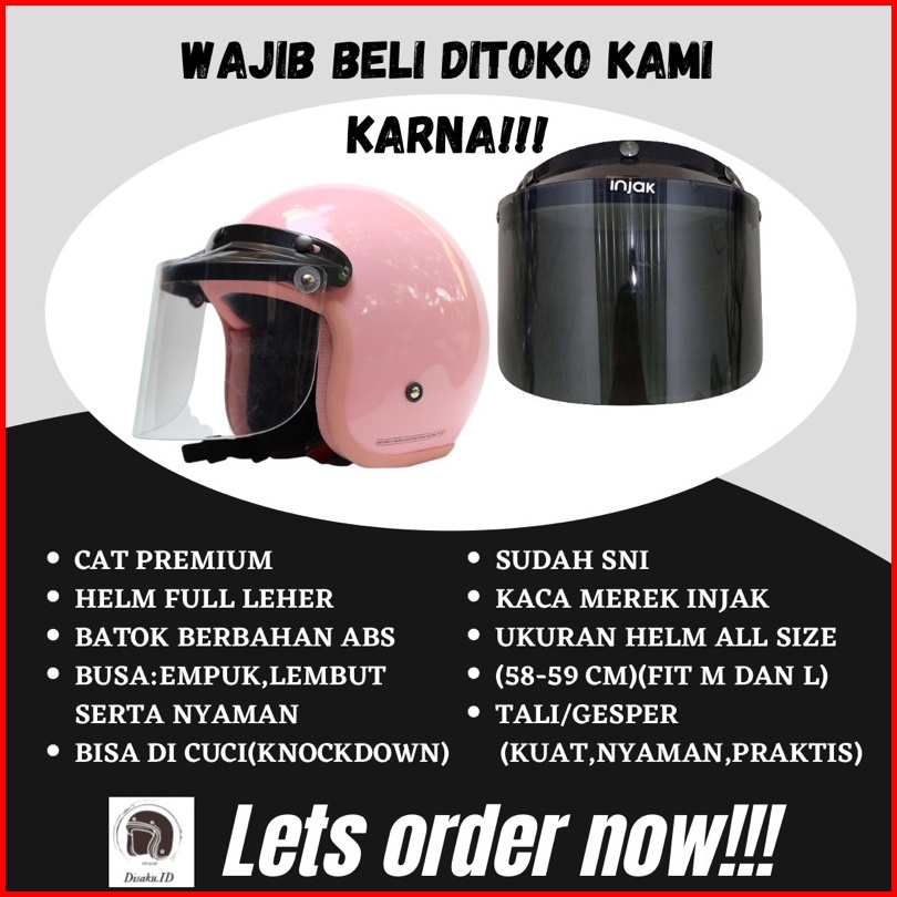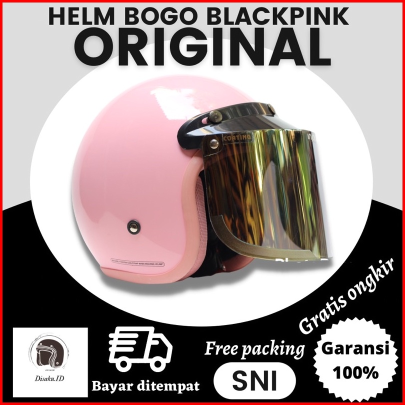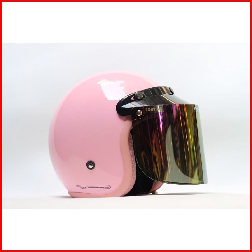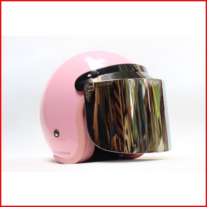 Helm Bogo Retro Pria Dan Wanita Hijab Classic Original Sni Trendy Polos Pink Pastel Kaca Datar Pelangi