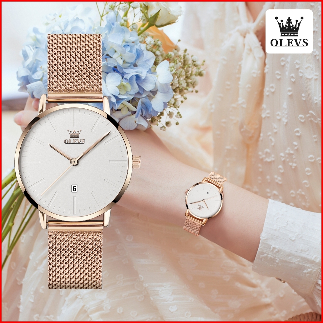 Olevs Jam Tangan Wanita Casual Fashion Analog Mewah Kecil Jam Tangan Wanita Terbaru Anti Air Stainless Steel Original Qu