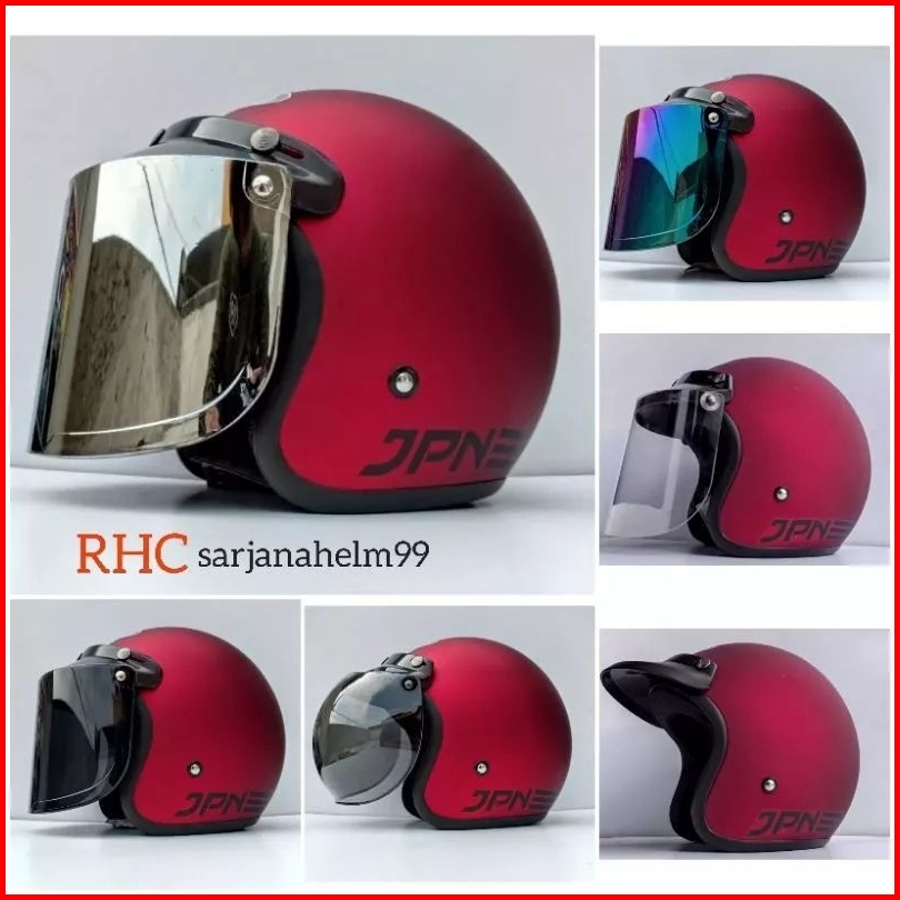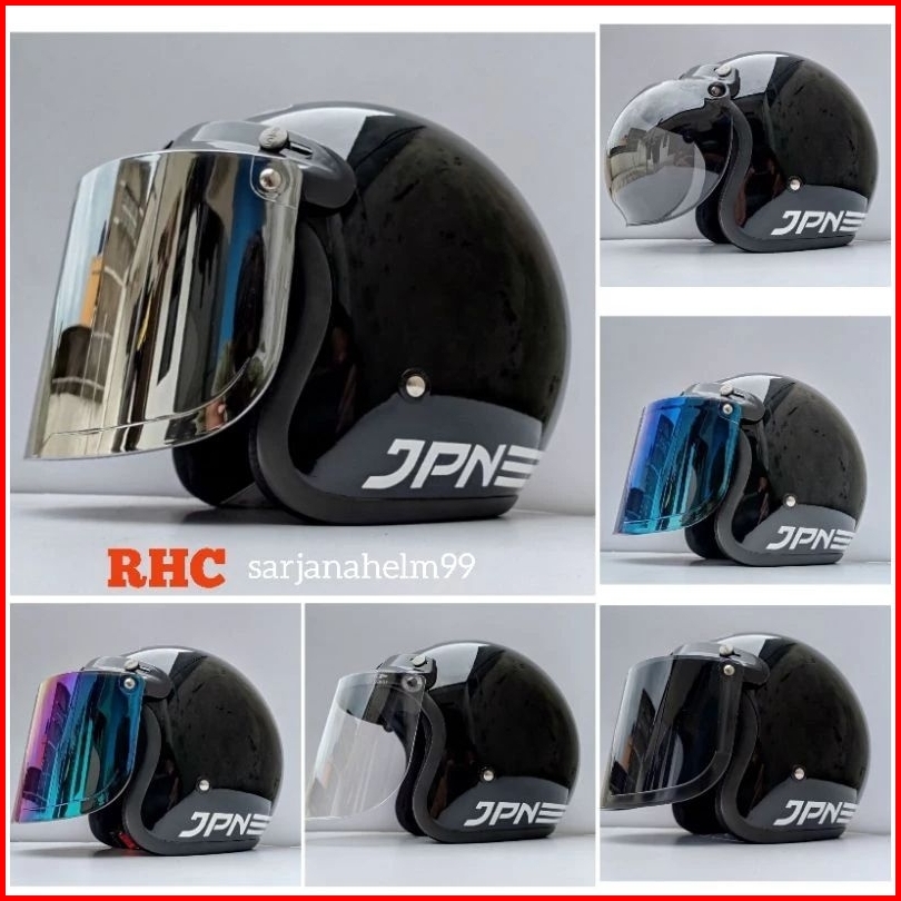 Helm Bogo Jpn Retro Dewasa Full Leher Warna Hitam Glossy