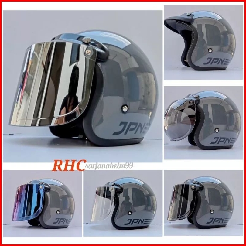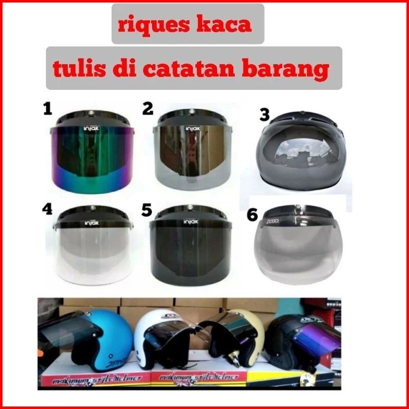 Gorilla gloss + kaca, maron doff+kaca, abu glossy + kaca, Putih + kaca, all grey doff+kaca, Pink pastel gloss+kc, hitam gloss+kaca, pastel ungu +kc, skey blue + kaca, capucino glos + kaca, Hitam doff +kaca, coklat glossy+kc, blue victory + kc, gun met gloss + kc, kuning glos+kaca, Helm saja tanpa kaca