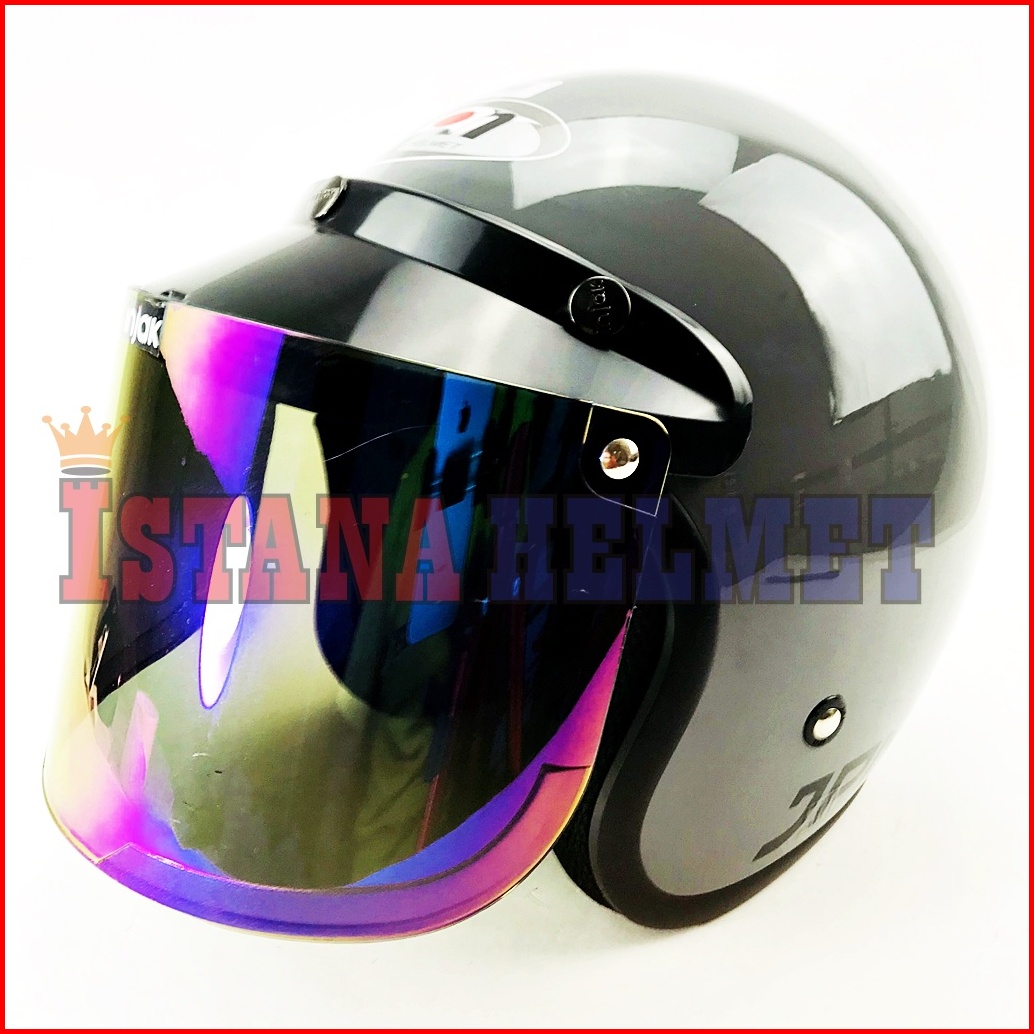 Helm Bogo Jpn Retro Arc Modern Grey Original Kaca Warna