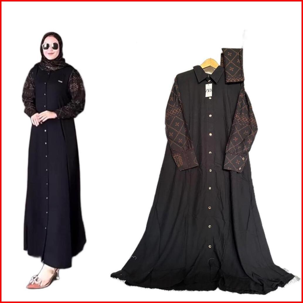 Gamis Set Hijab Edisi Hari Raya 2025 Viral Matt Rayon Terbaru Kekinian Gamis Hitam Turkey Motif