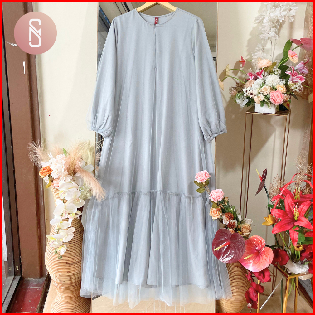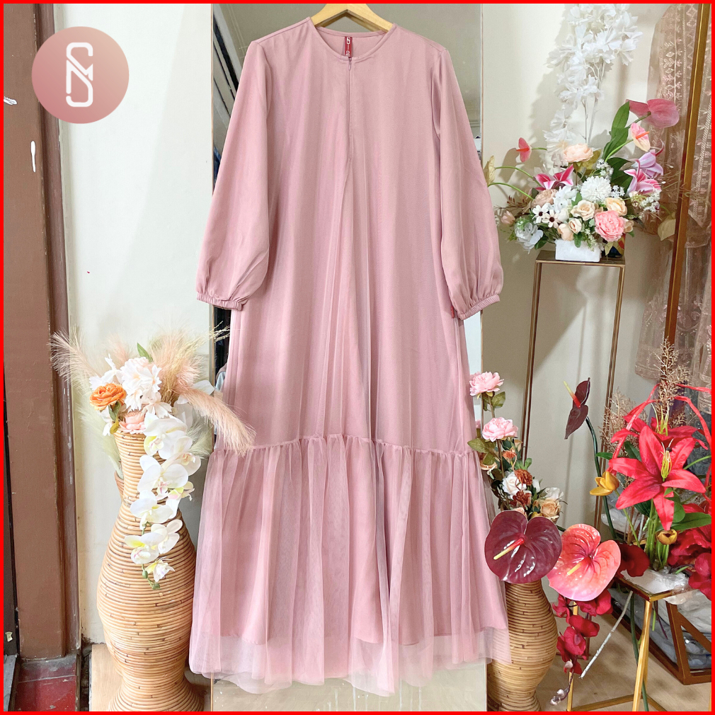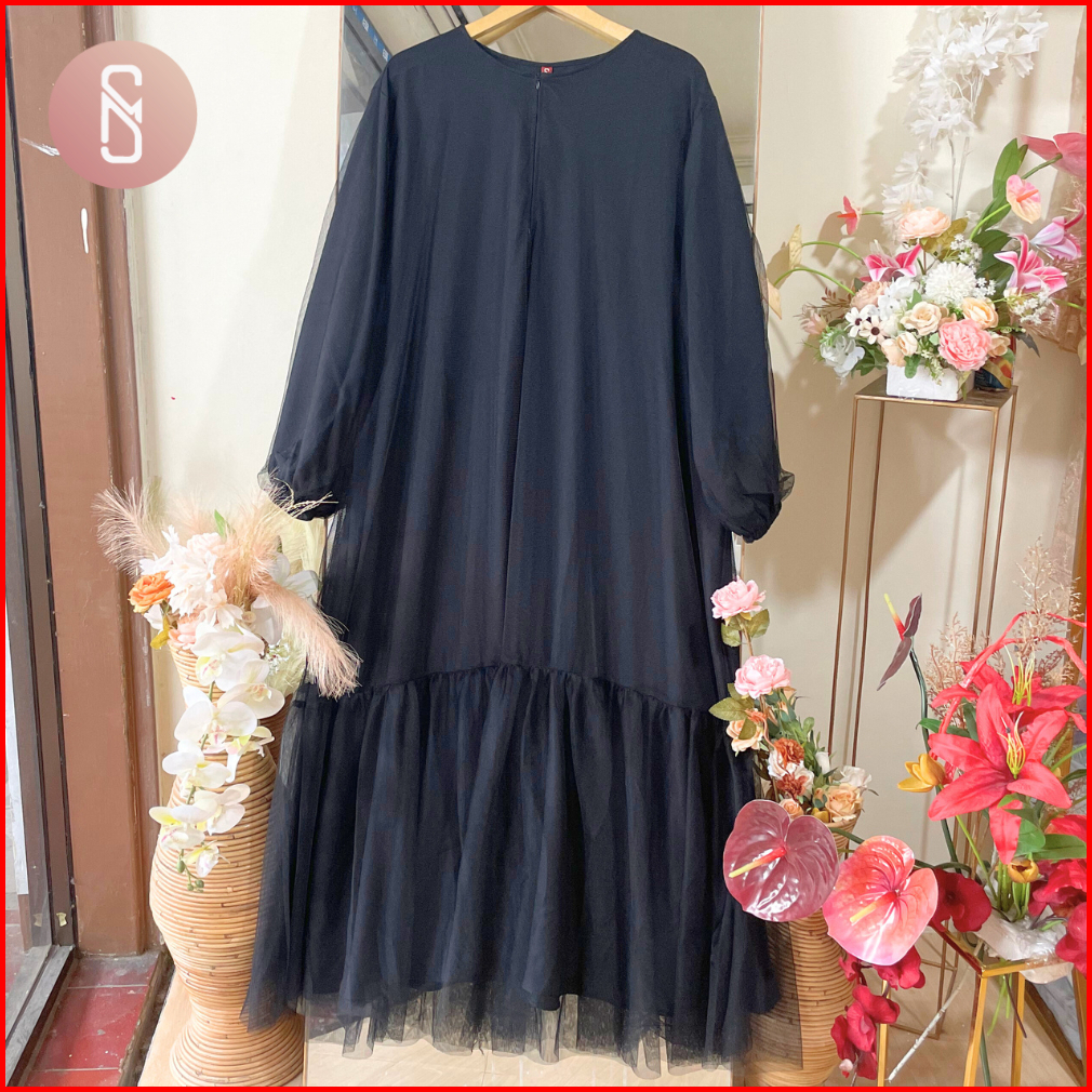 Daisha Myshawl Gamis Jumbo Polos Tille Motif Kasual Kondangan Wisuda Kekinian Big Size Brukat Bunga Jumbo