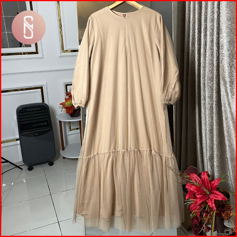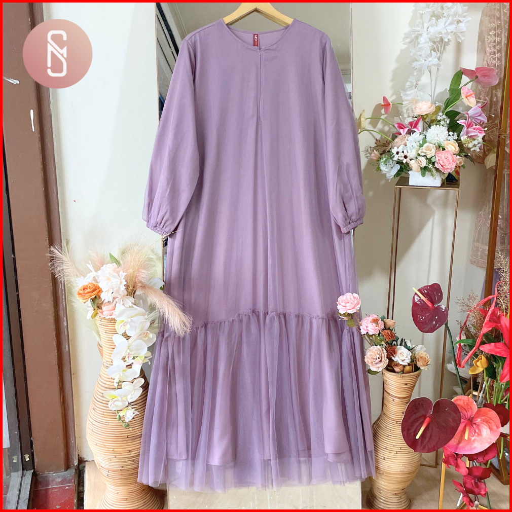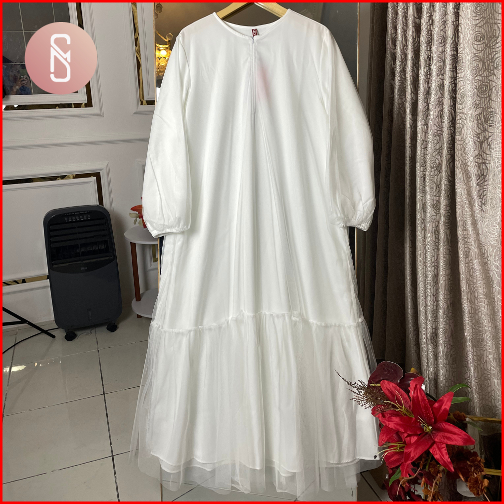 Daisha Myshawl Gamis Jumbo Polos Tille Motif Kasual Kondangan Wisuda Kekinian Big Size Brukat Bunga Jumbo