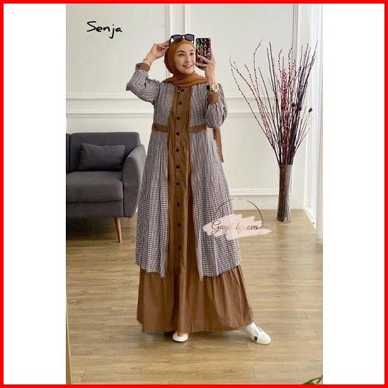 Set Gamis Muslimah Modern Dengan Cardigan Panjang Nyaman Modis