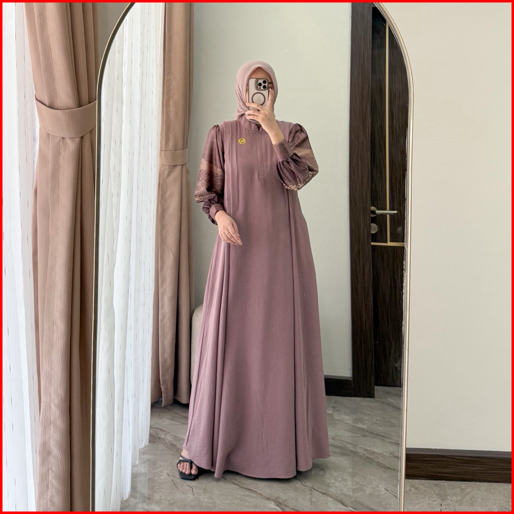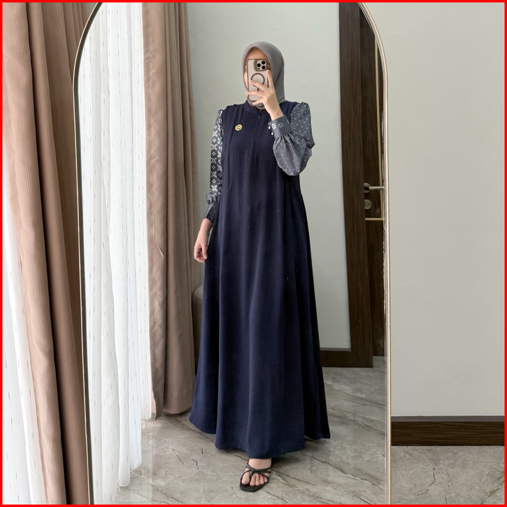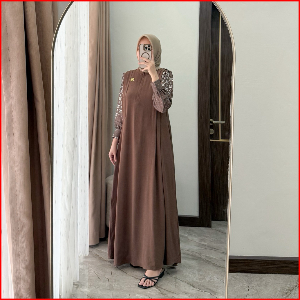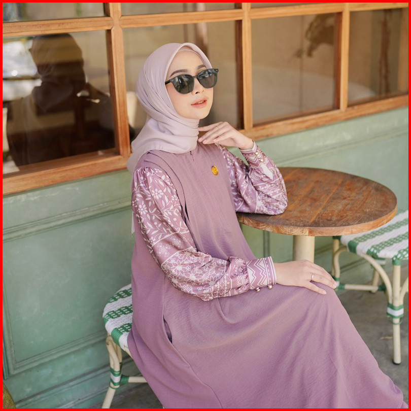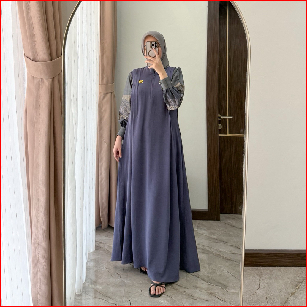 Yumna Dress - Dress Terbaru Bahan Crinkle Kombinasi Motif
