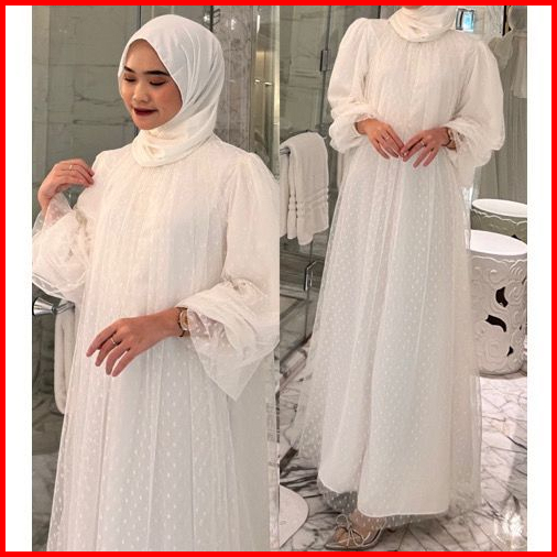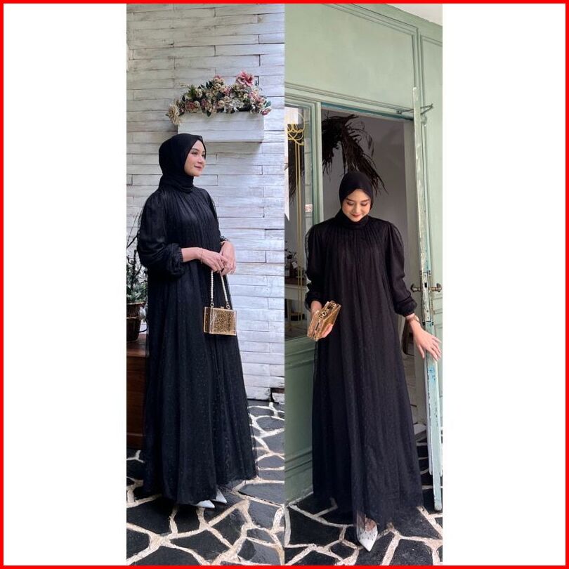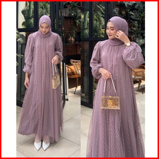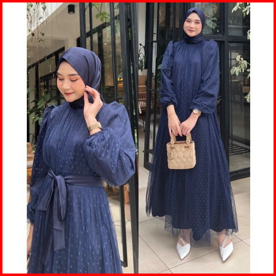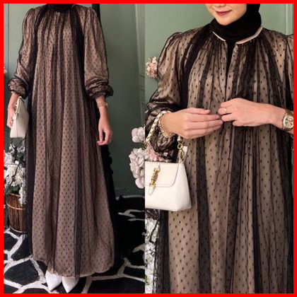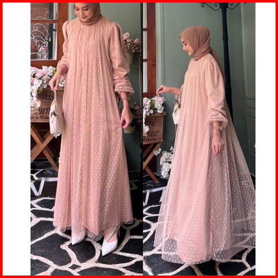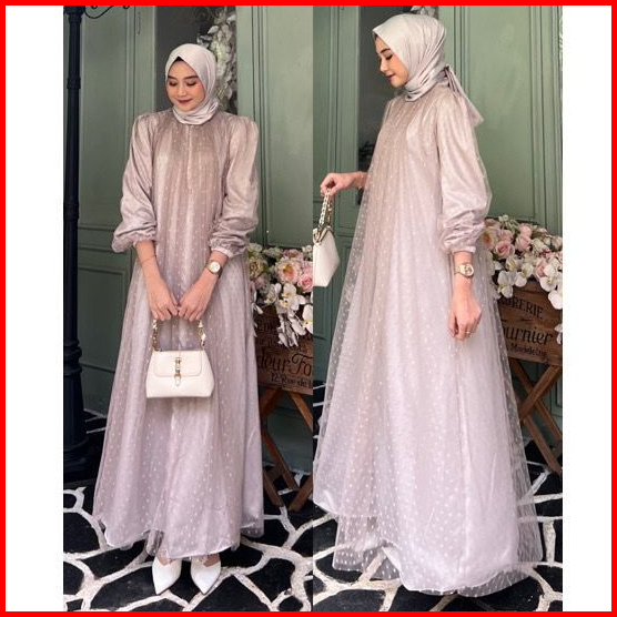 Aziee Dress Set Outer Size Jumbo M-xxl Dress Satin Mix Tulle Dot Kondangan Mewah Elegant New Motif Dress Bahan Satin Gau