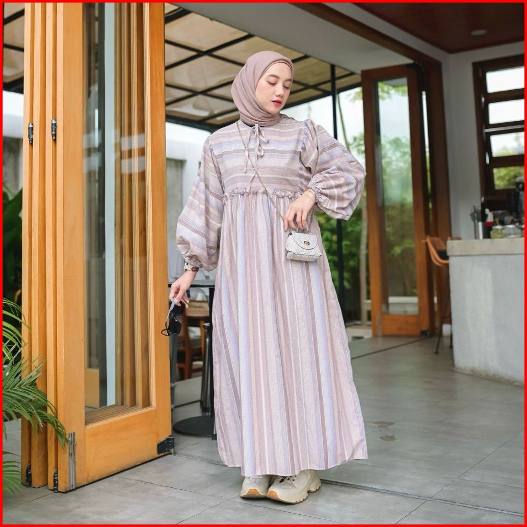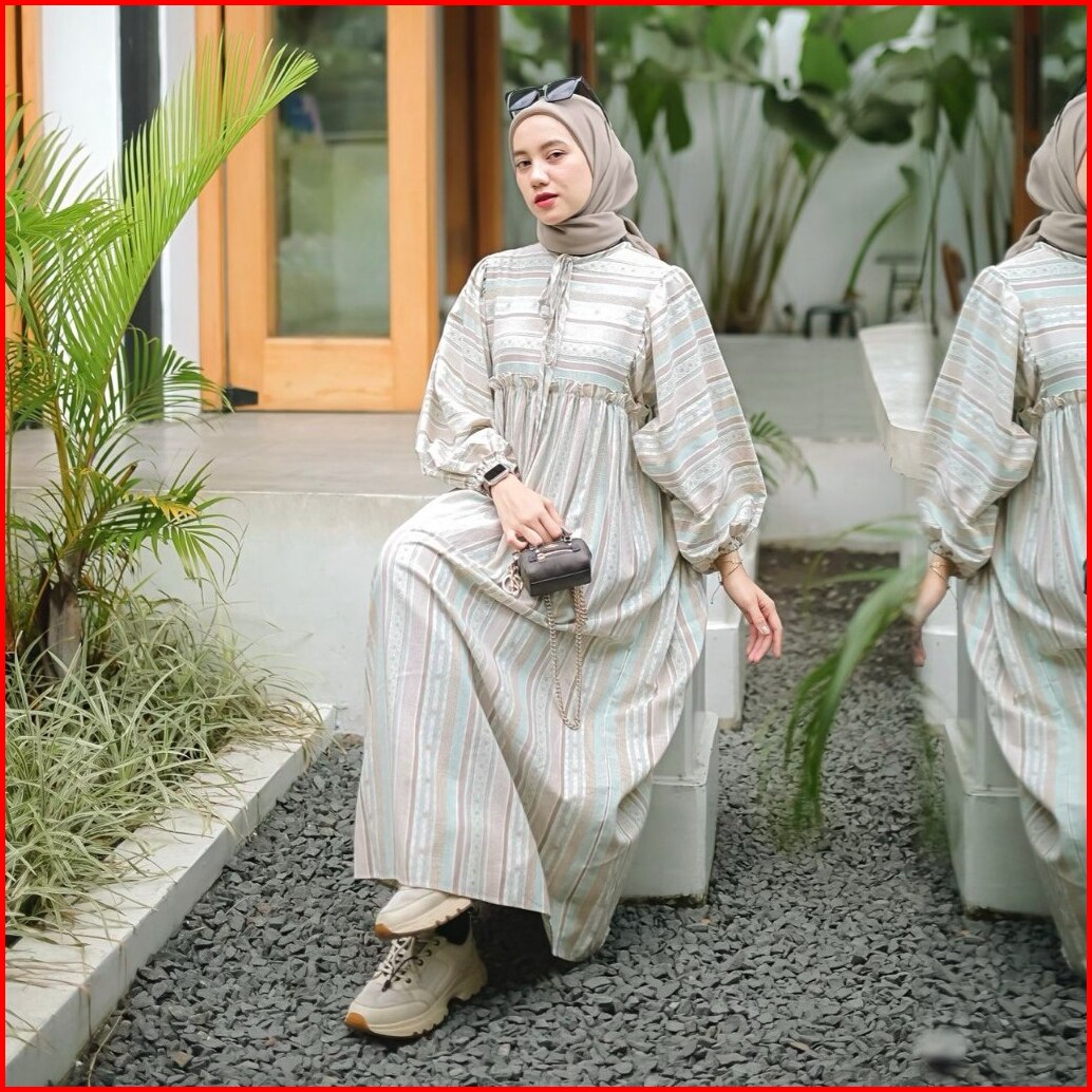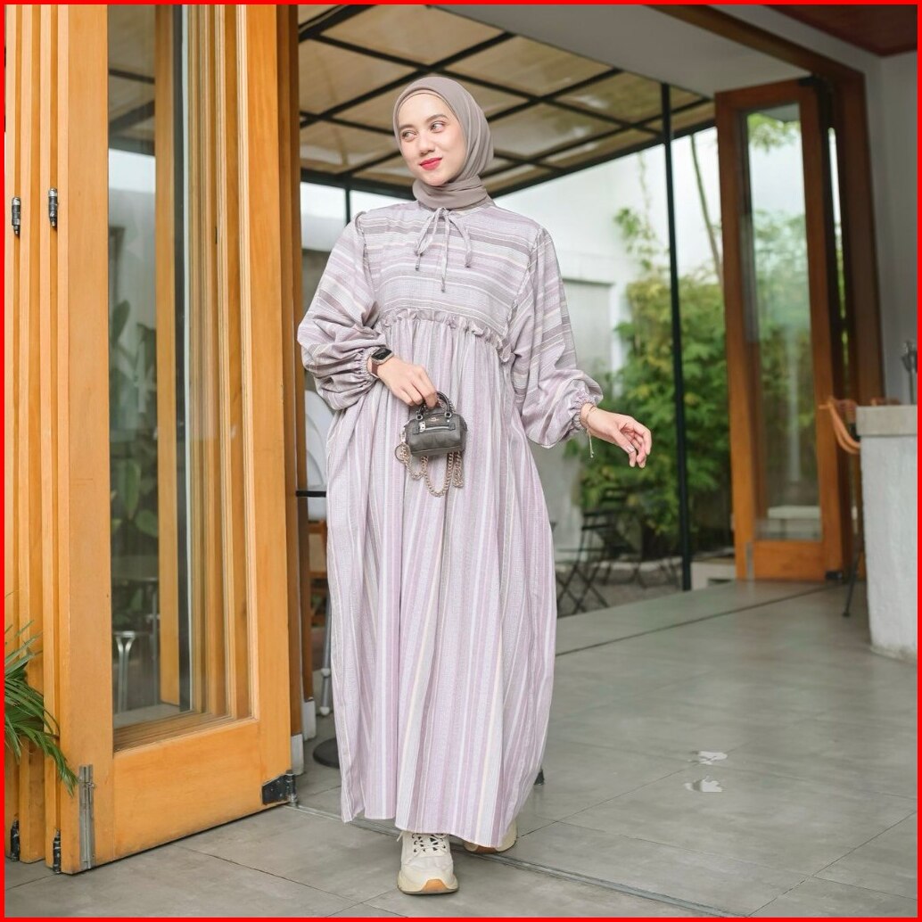 Proudyhijab - Boho Dress Korean Style Variasi Ruffle Bahan Katun Dress Wanita Lengan Balon Busui Friendly Resleting Depa