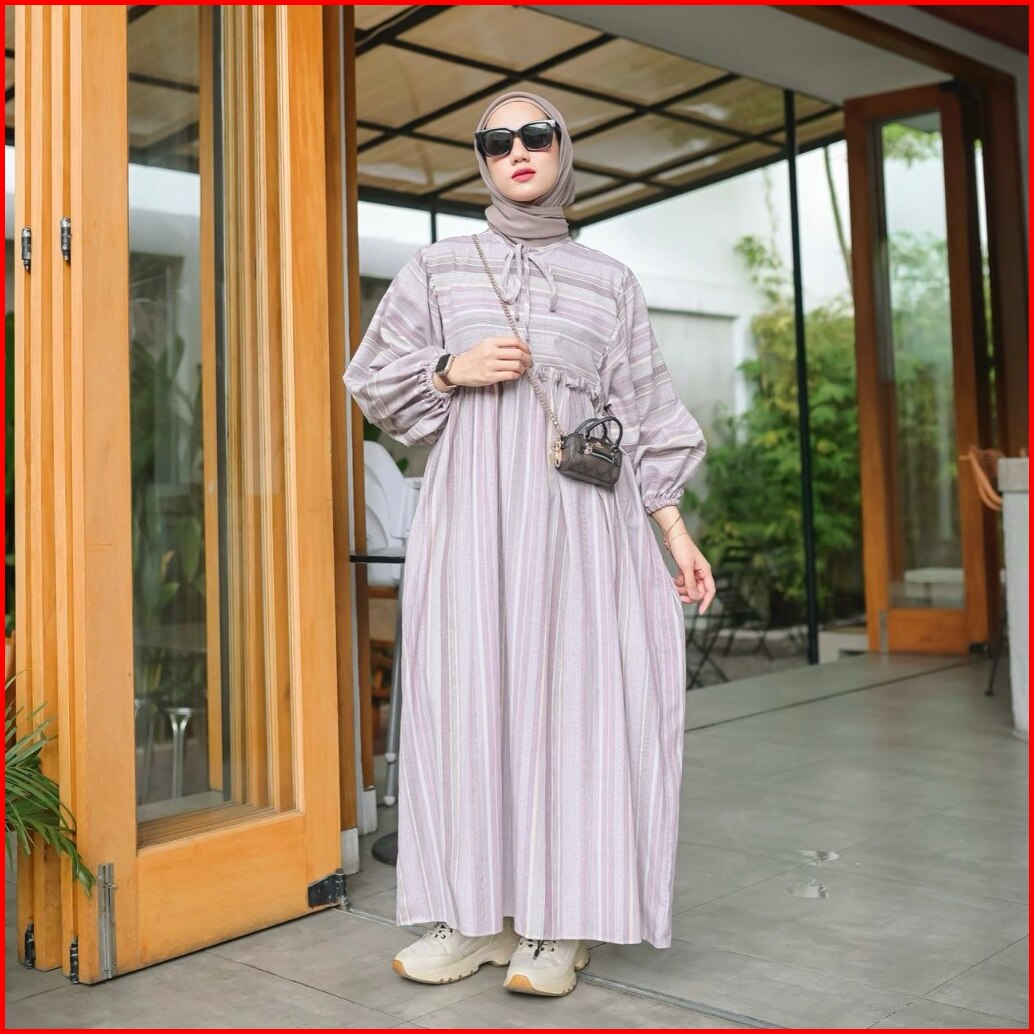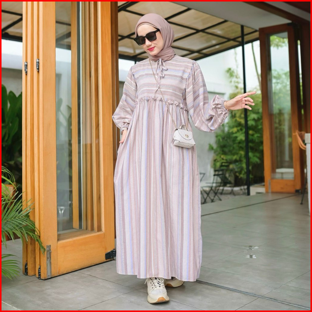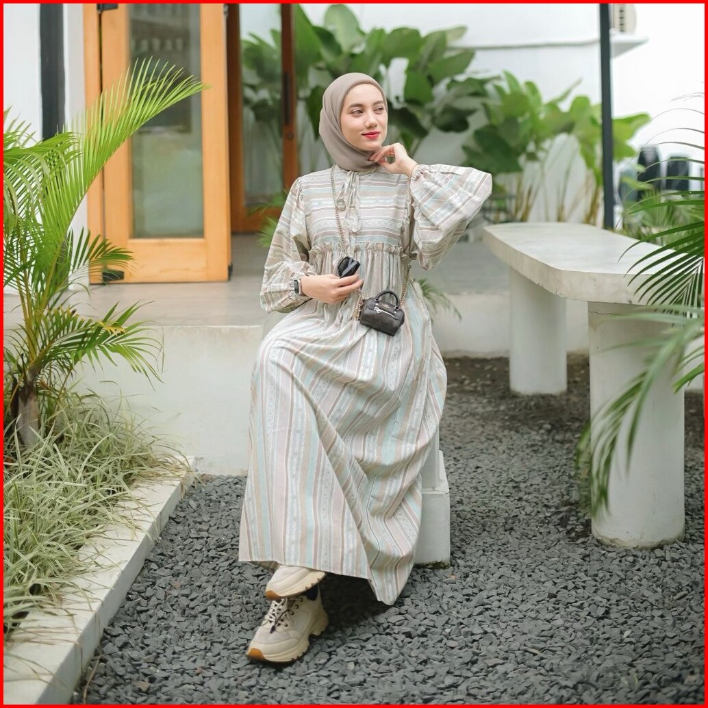 Proudyhijab - Boho Dress Korean Style Variasi Ruffle Bahan Katun Dress Wanita Lengan Balon Busui Friendly Resleting Depa