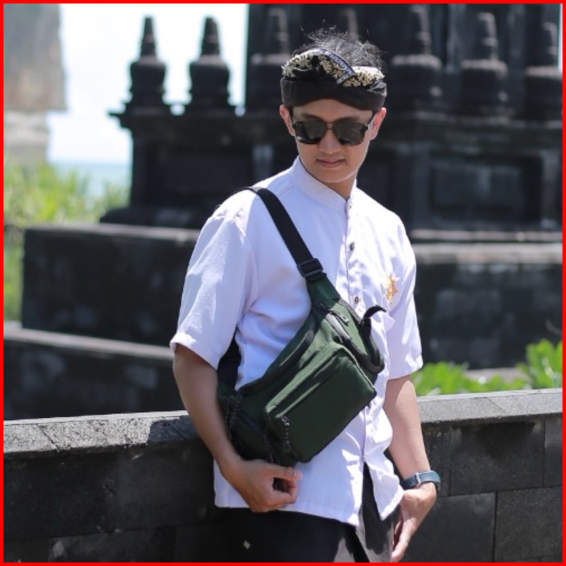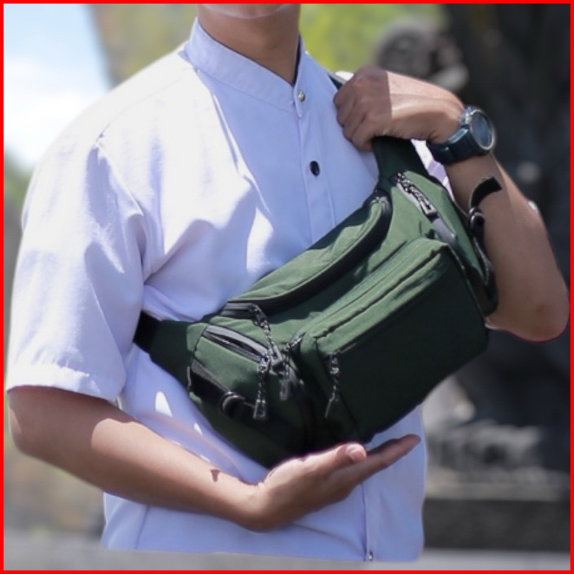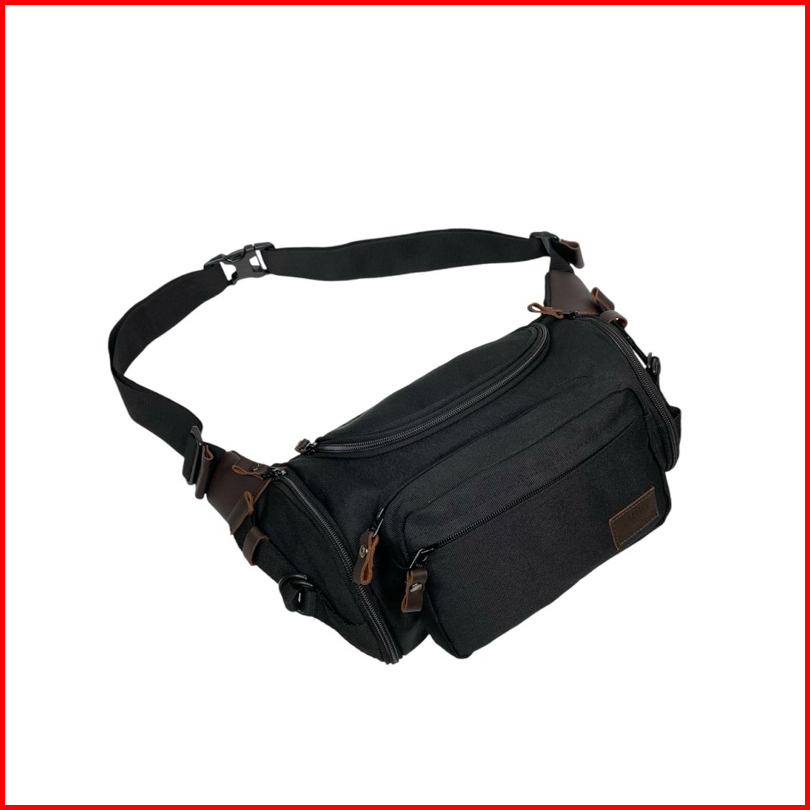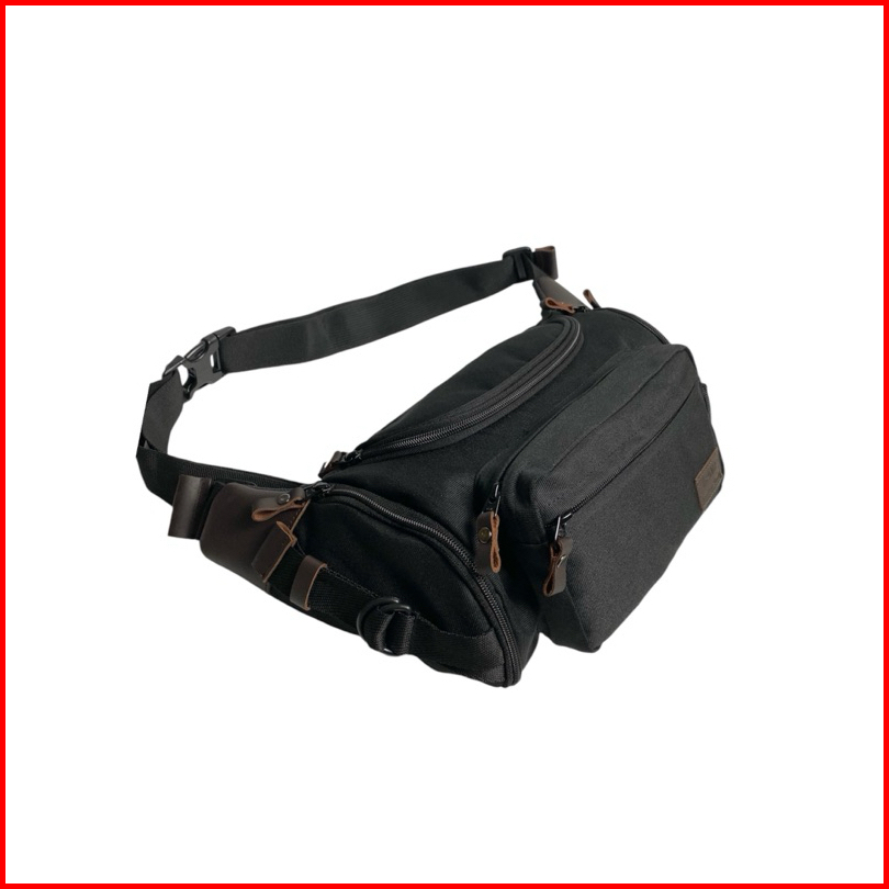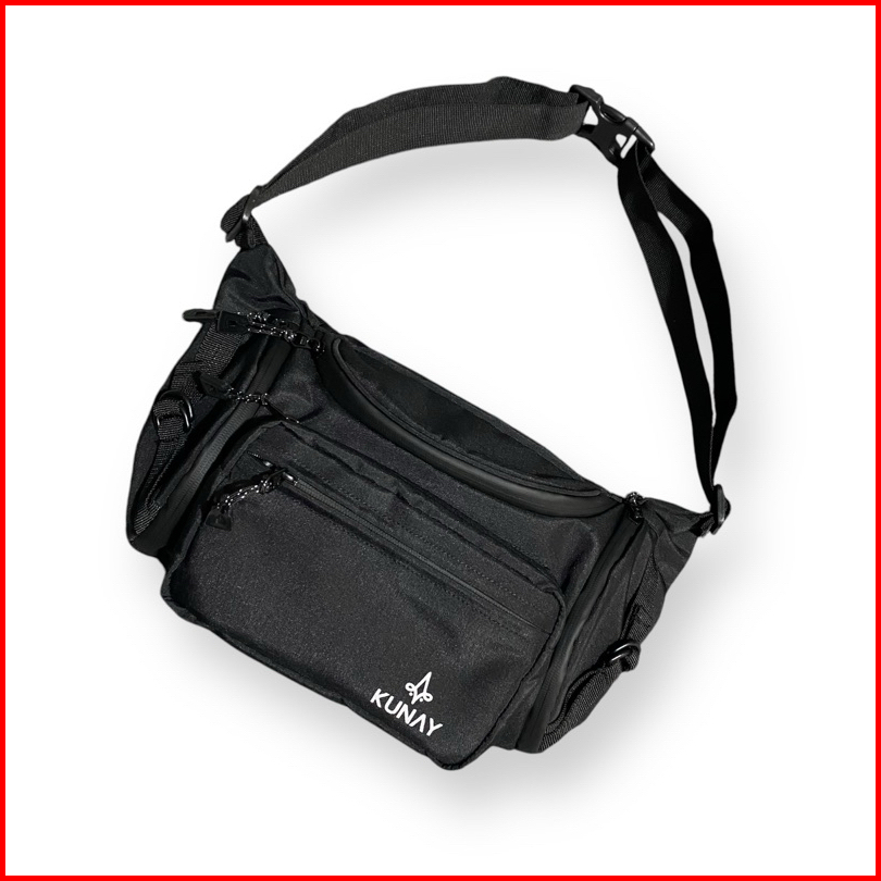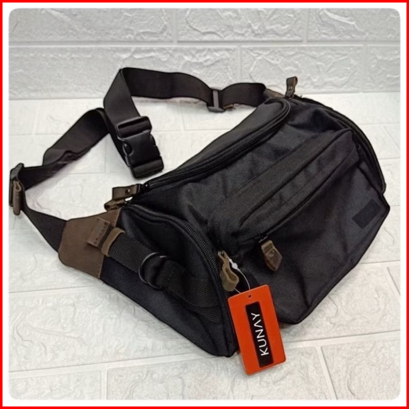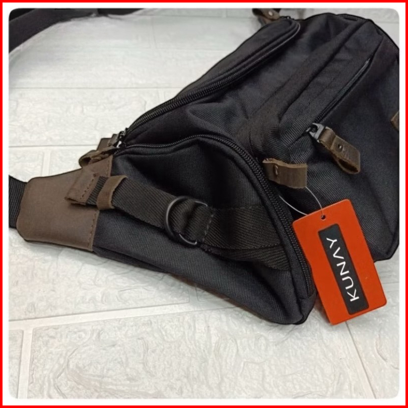 Kunay - Tas Selempang Kombinasi Kulit Sapi Asli Waistbag Haya Jumbo 7 Resleting Hitam Series Outdoor