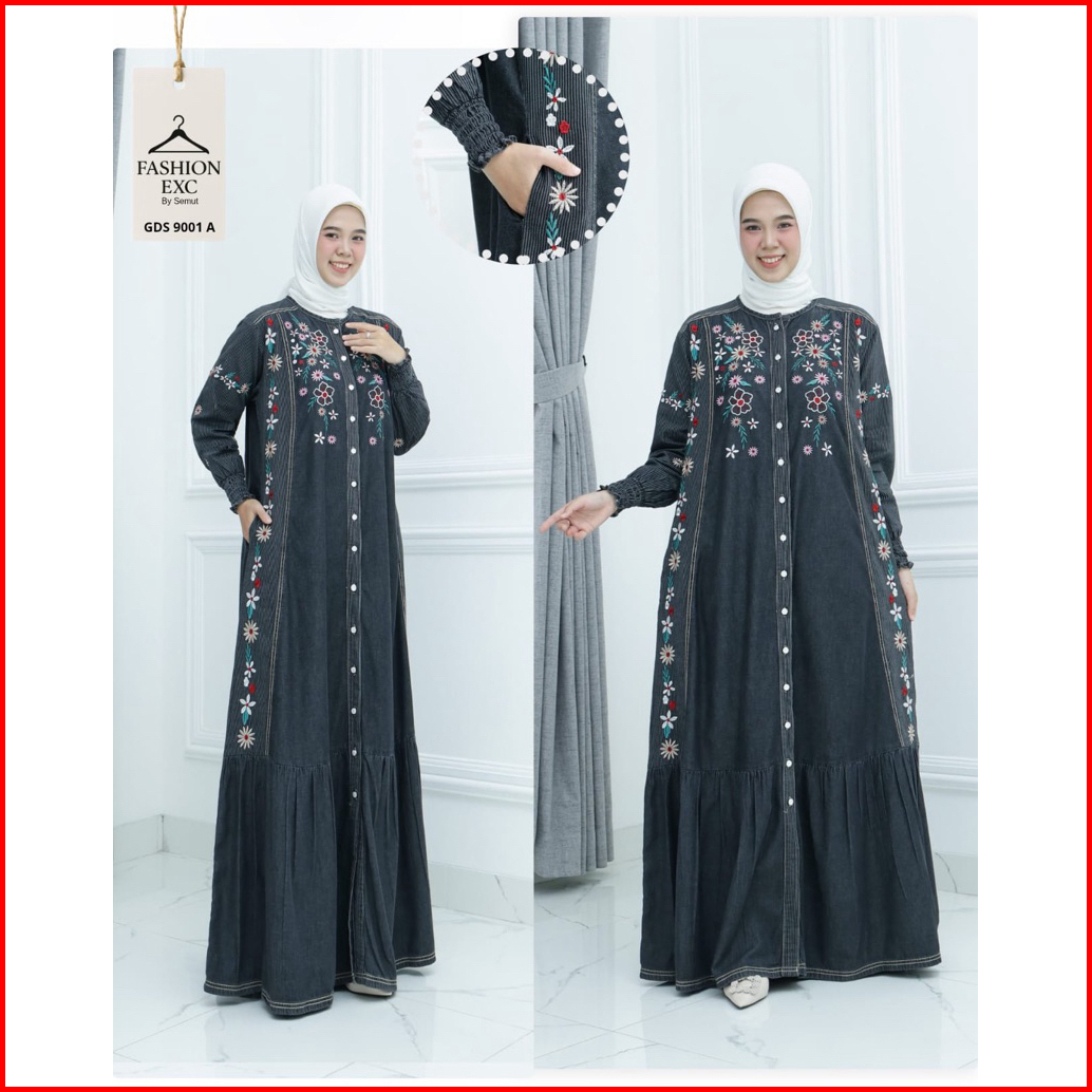 9006 9001 Gamis Denim Jeans Syaina By Semut Gamis Denim Gamis Jeans Import