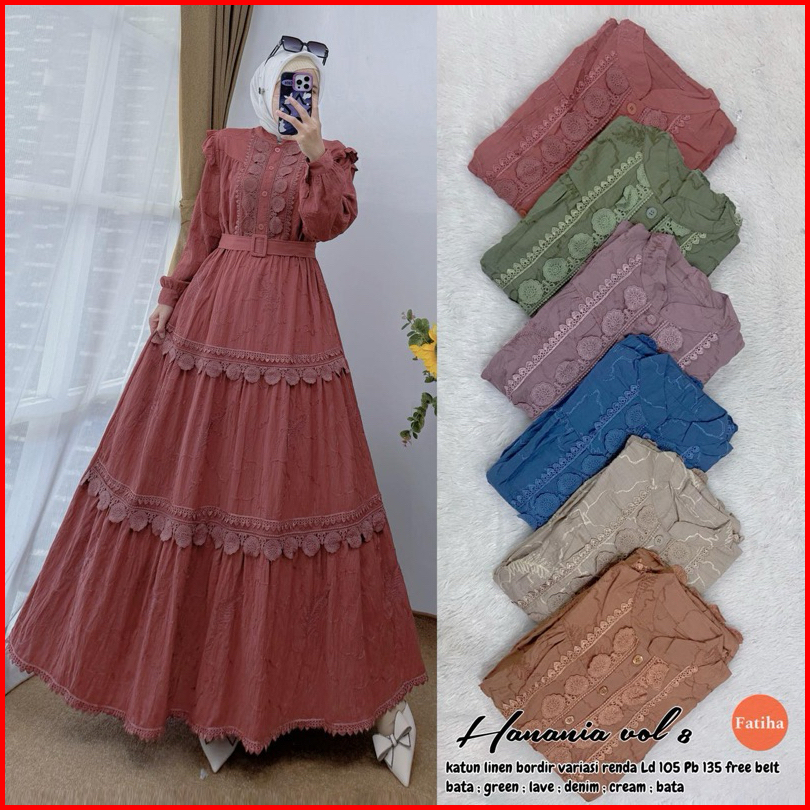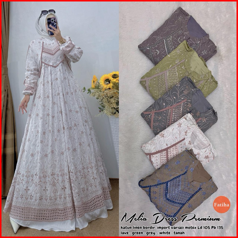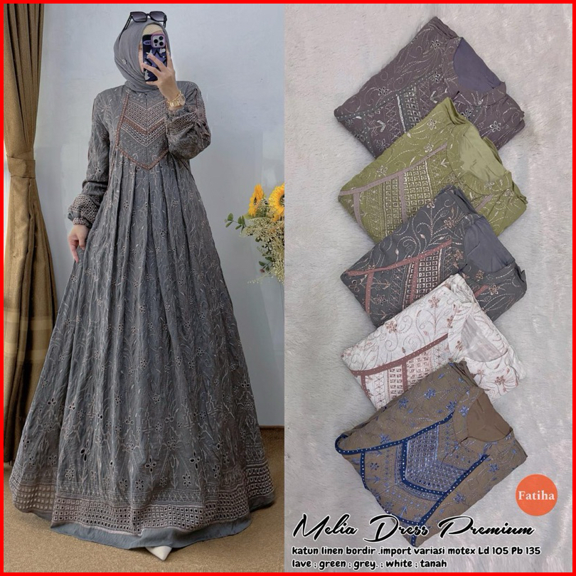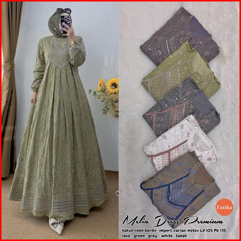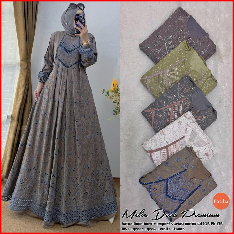 New Melia Dress Gamis Maxy Wanita Terbaru Hanania Maxy Linen Halus By Fatiha
