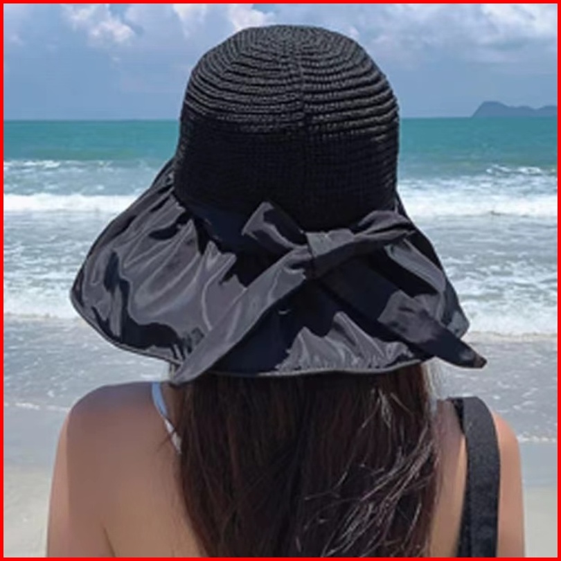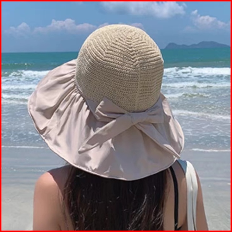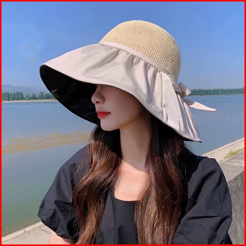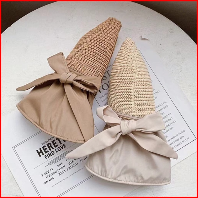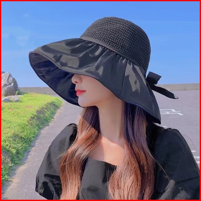 Wander-fs004 Lipat Topi Sun Visor Wanita Bucket Hat Pantai Rajut Elegant High Quality Anti Uv Matahari Model Korea