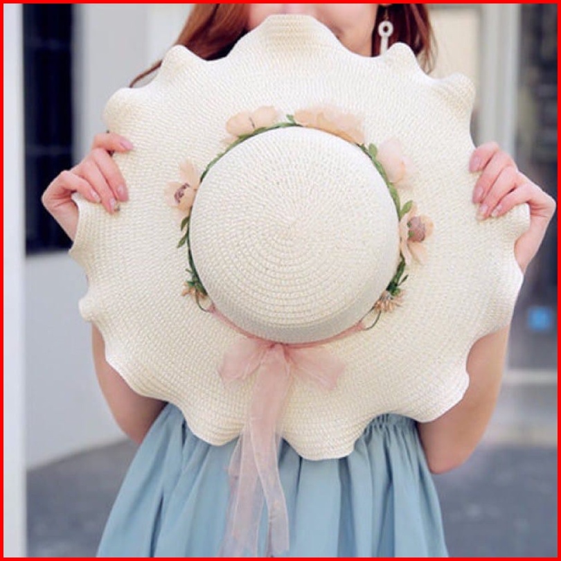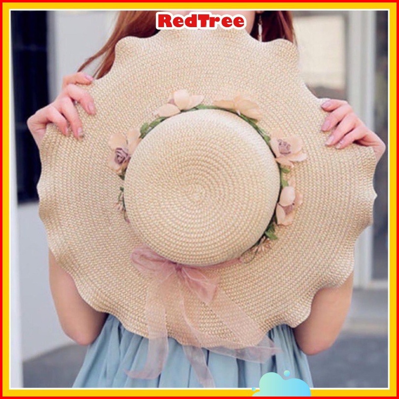 Topi Pantai Wanita Bunga Pelindung Uv -summerhat Pantai Import T42 Redtree