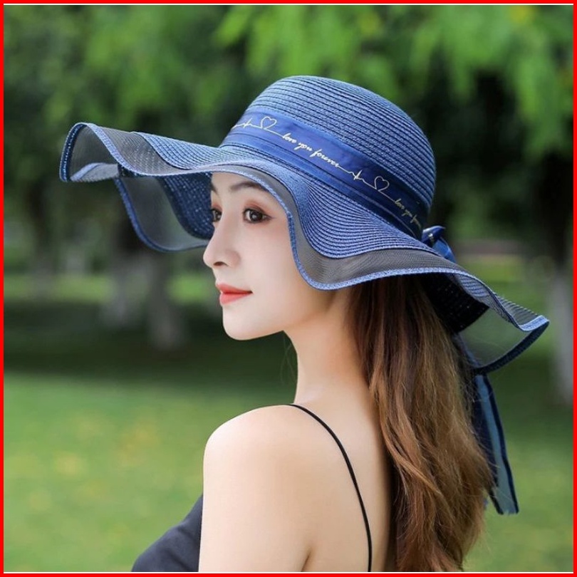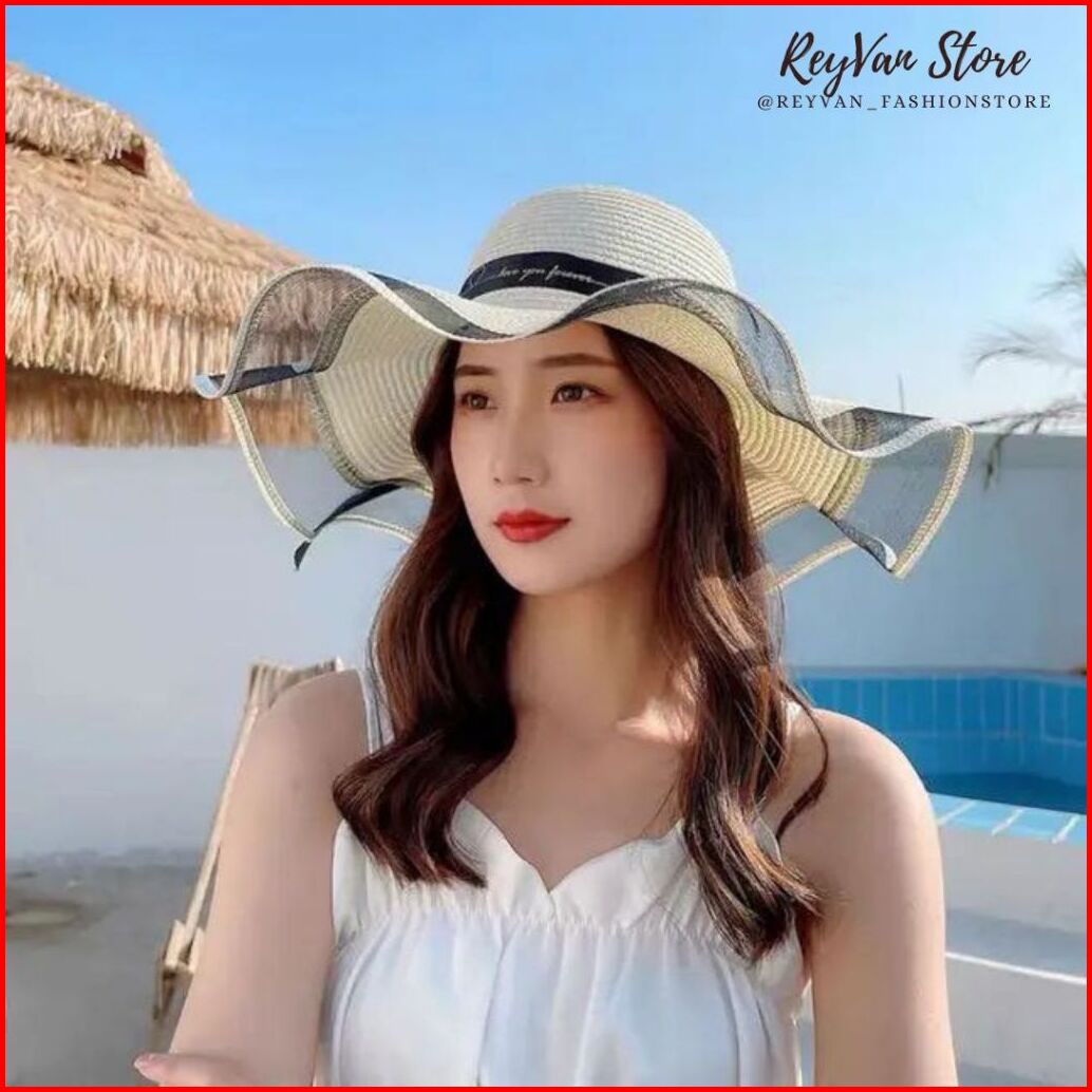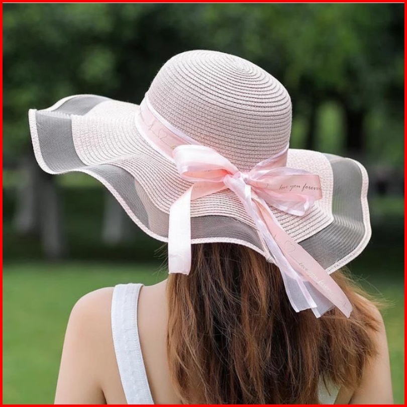 Pg23d - Topi Pantai Import Gelombang Dewasa Model Tile Summer Hat Topi Wanita Topi Import