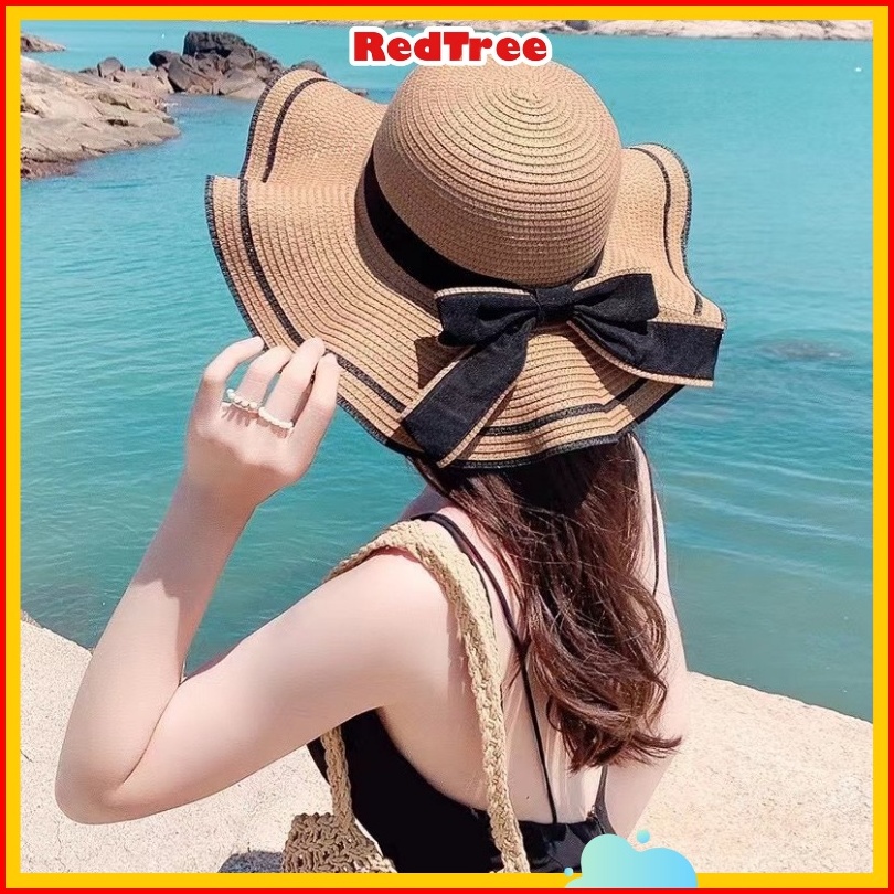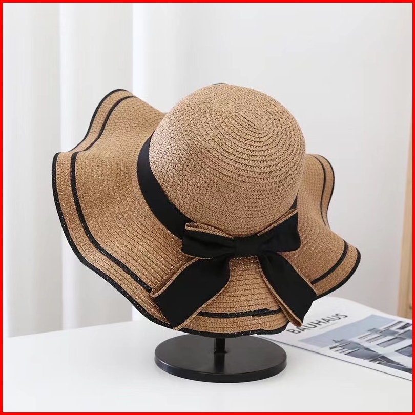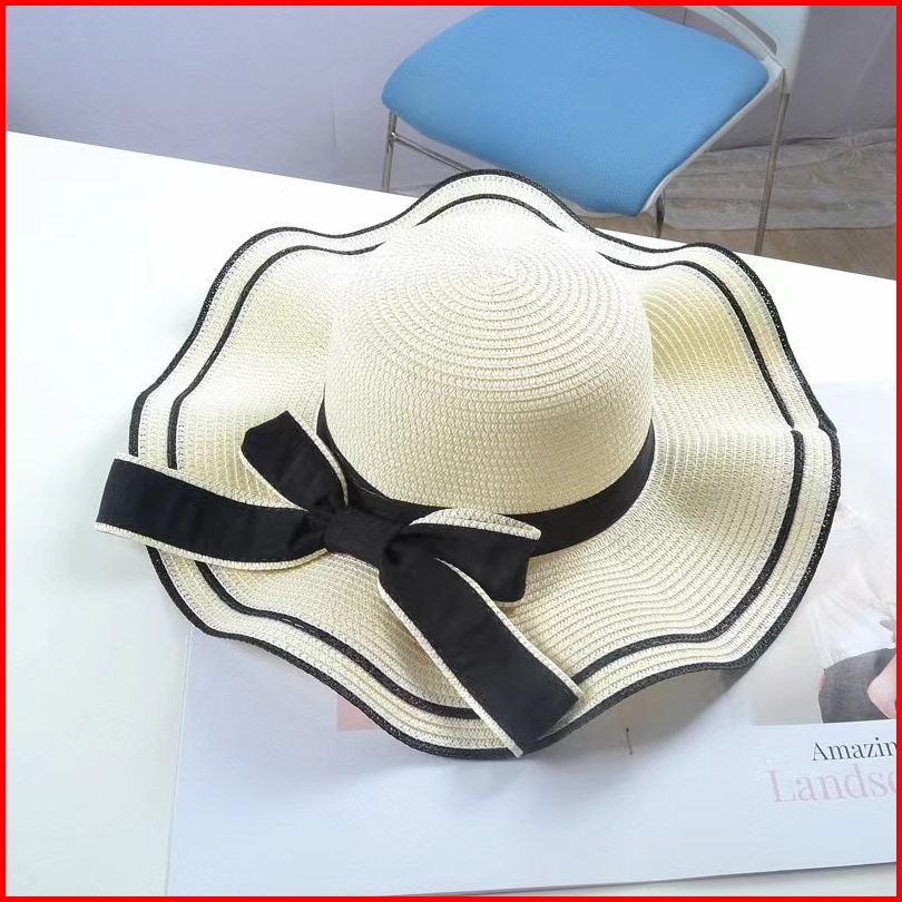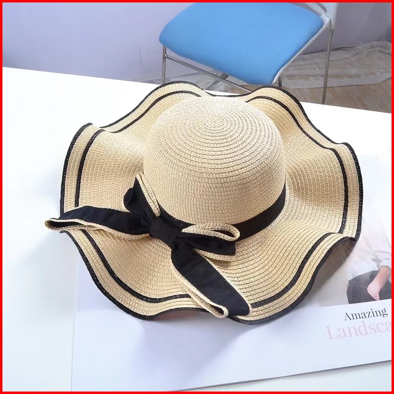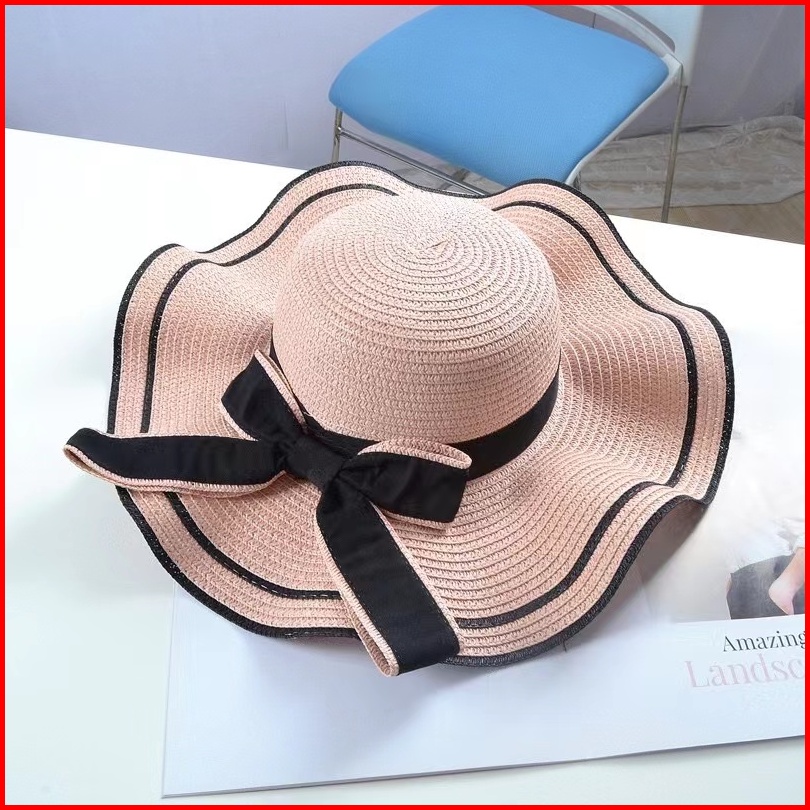Topi Pantai Wanita Bunga Pelindung Summerhat Pantai Jerami Import T58