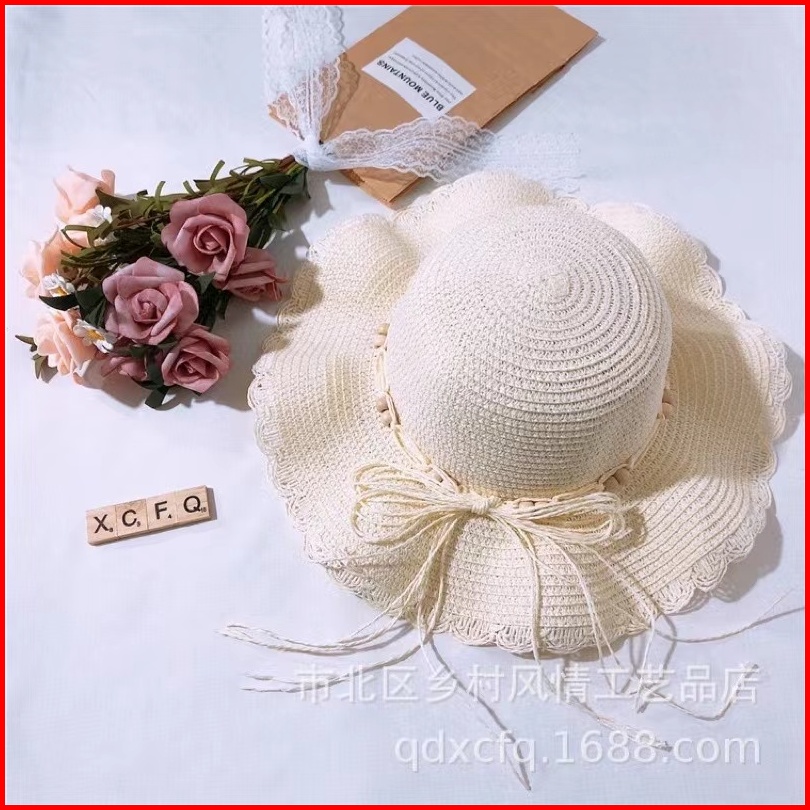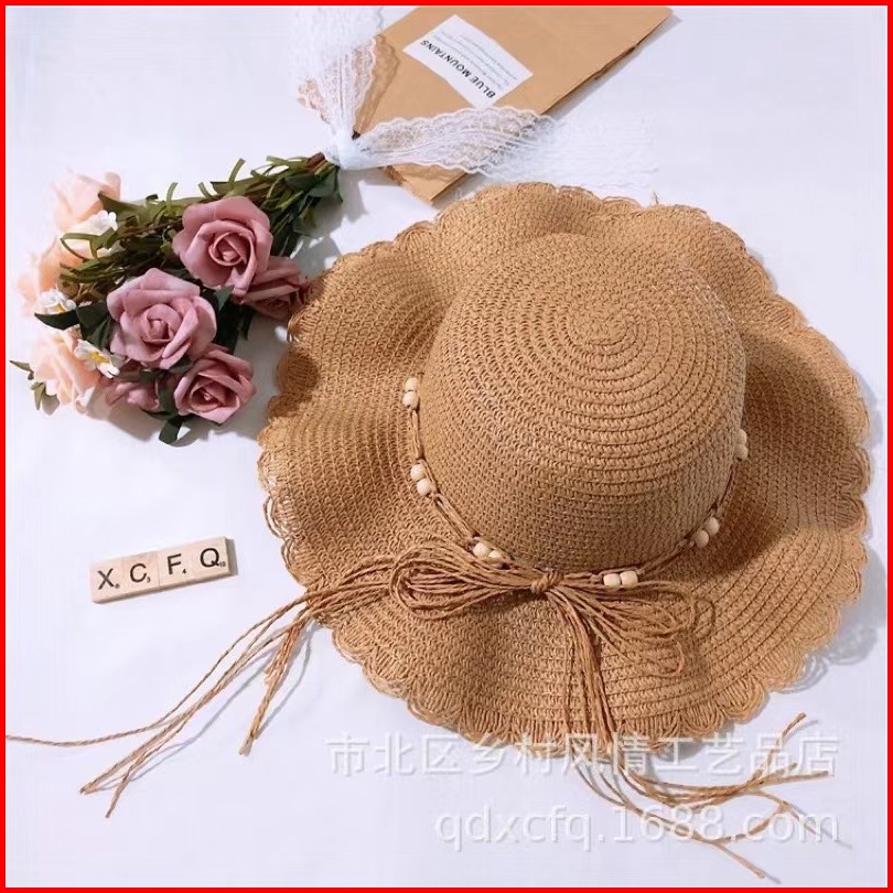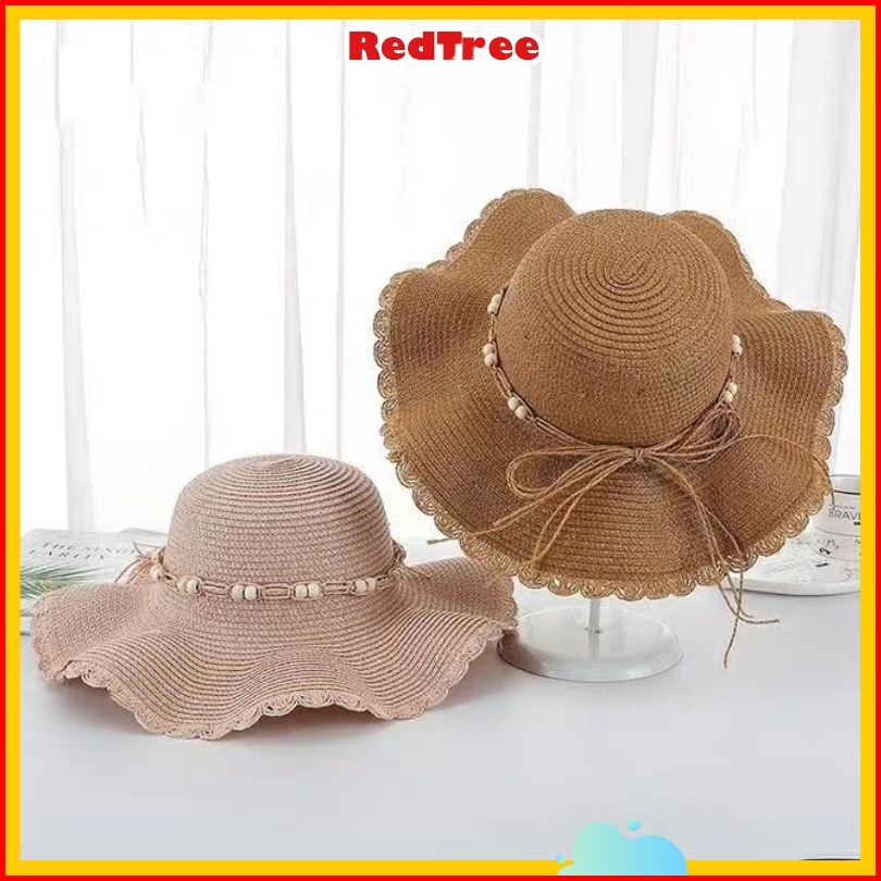 Topi Pantai Wanita Bunga Pelindung Uv -summerhat Pantai Import Redtree T54