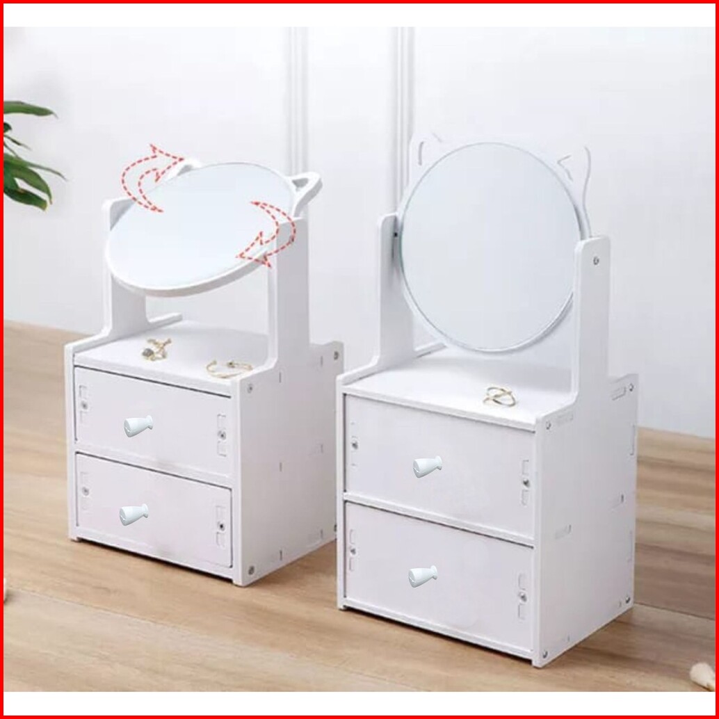 Queen Fashions Rak Kosmetik Vintage 2 Laci Cermin 956