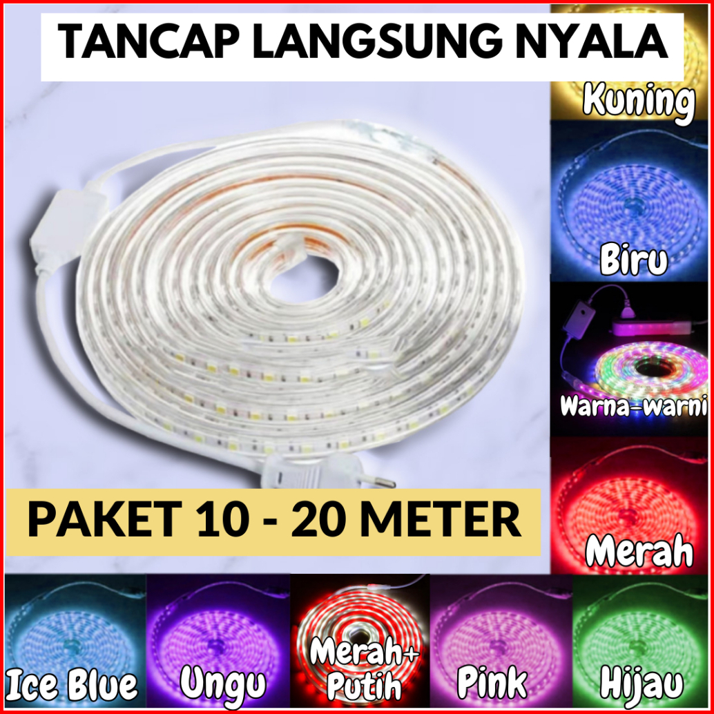 Paket 10 20 Meter Lampu Led Strip 5050 2835 3528 Plus Socket Ac 220v Langsung Nyala Dan Pasang Tanpa Ribet