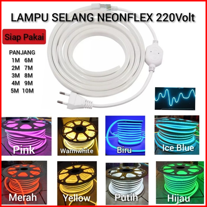 Paket Lampu Led Neon Flex Ledf 6m - 10m Ac 220v Lengkap Tinggal Colok