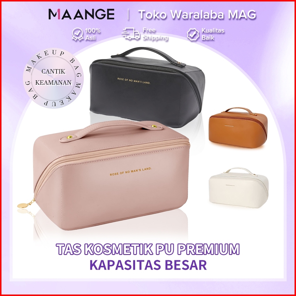 Maange Wanita Pu Tas Kosmetik Pouch Make Up Bantal Kulit Persegi Panjang Ritsleting Tas Rias Fashion Kanvas Tas Tangan P