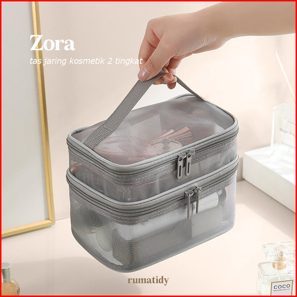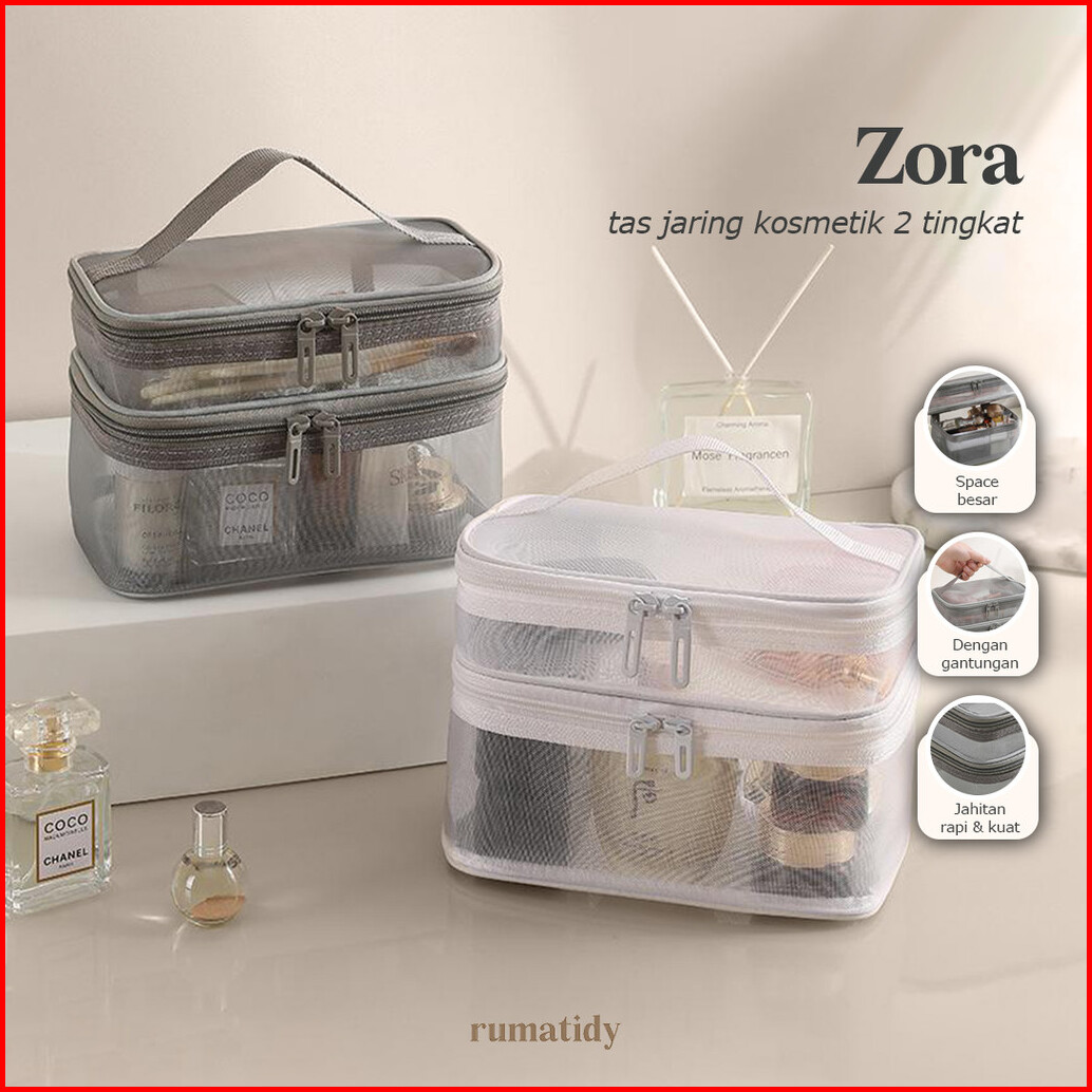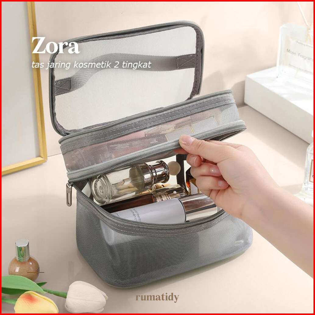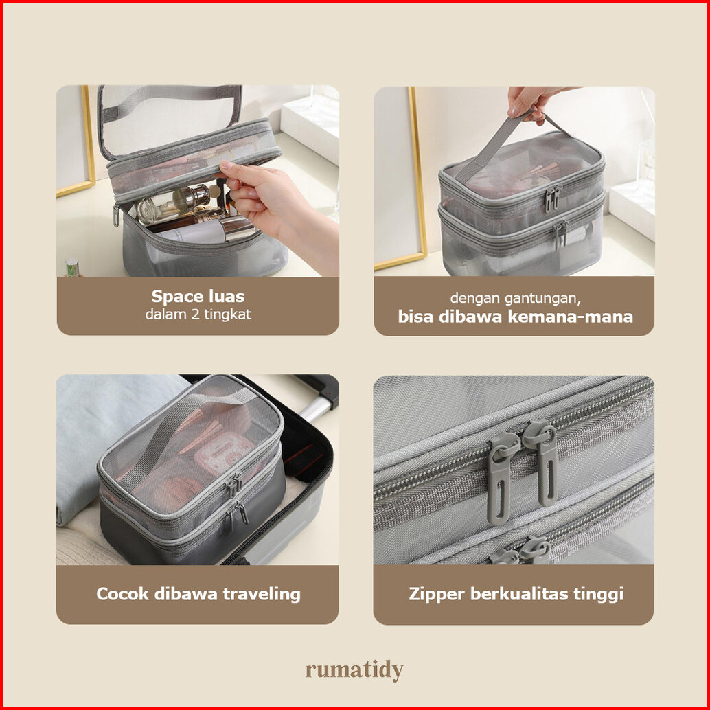 Rumatidyzora Tas Jaring 2 Tingkat Pouch Make Up Kosmetik Skincare Travel Organizer