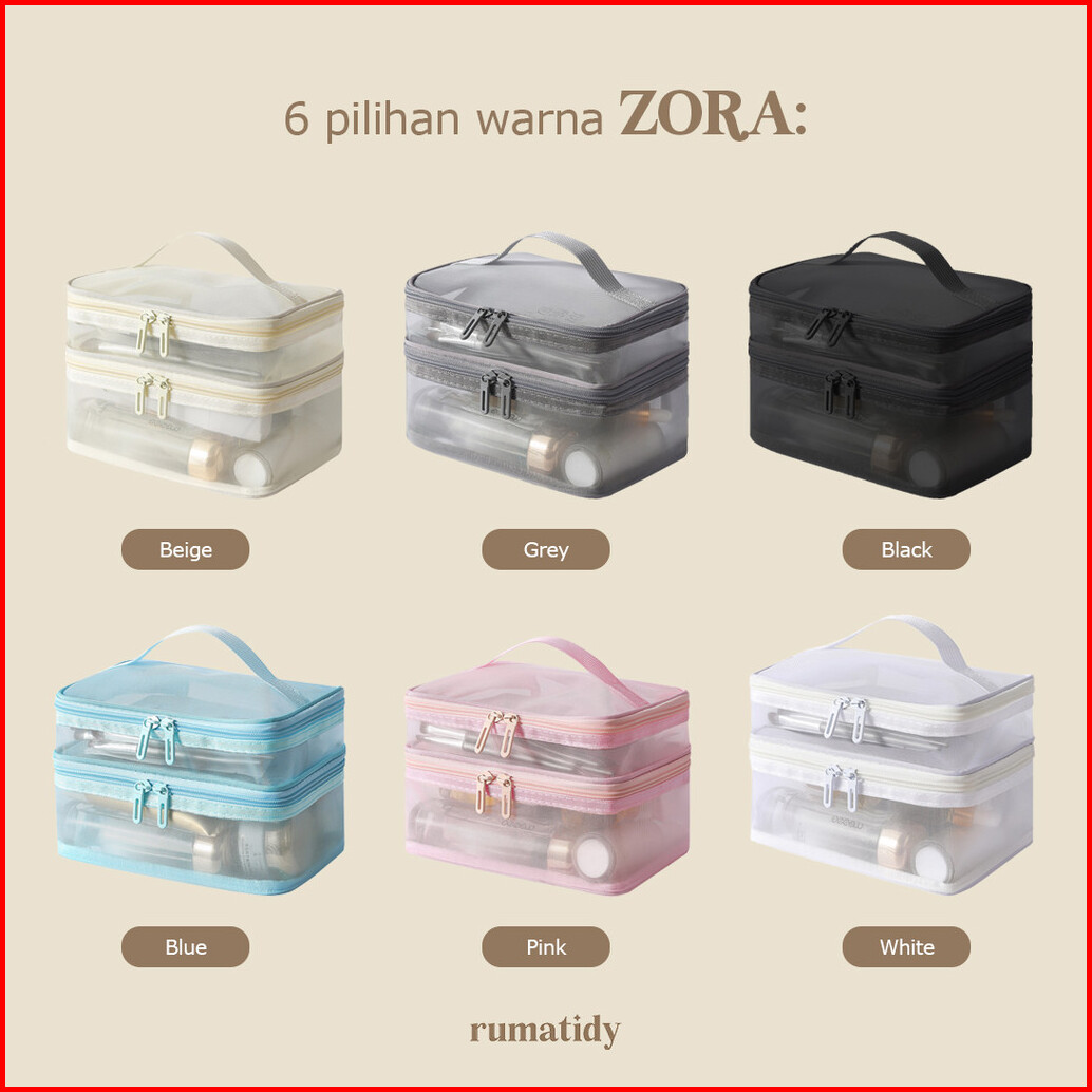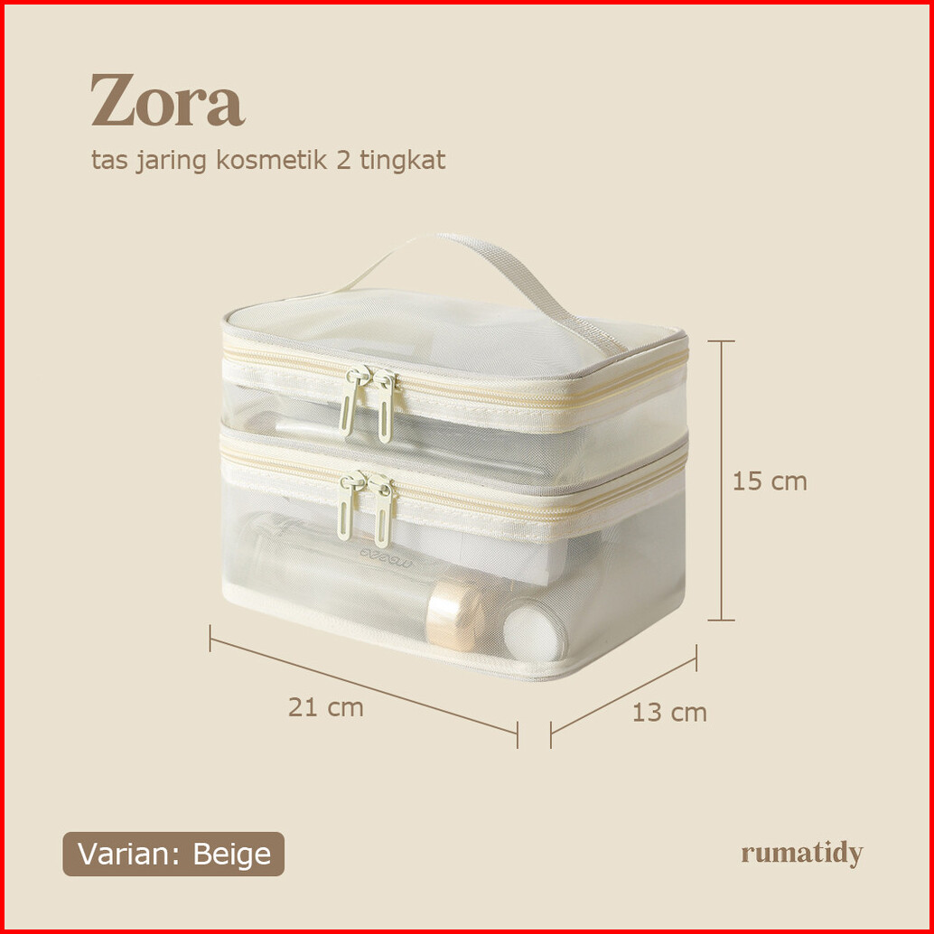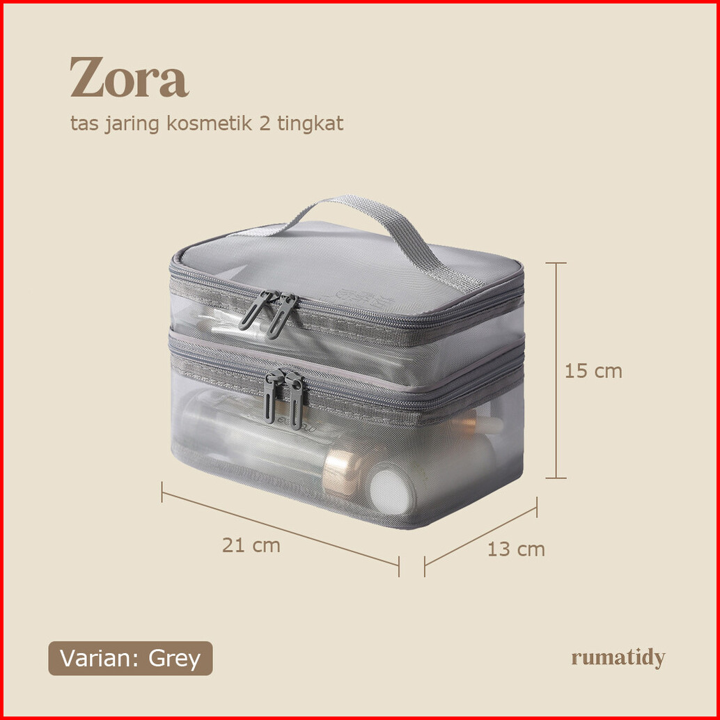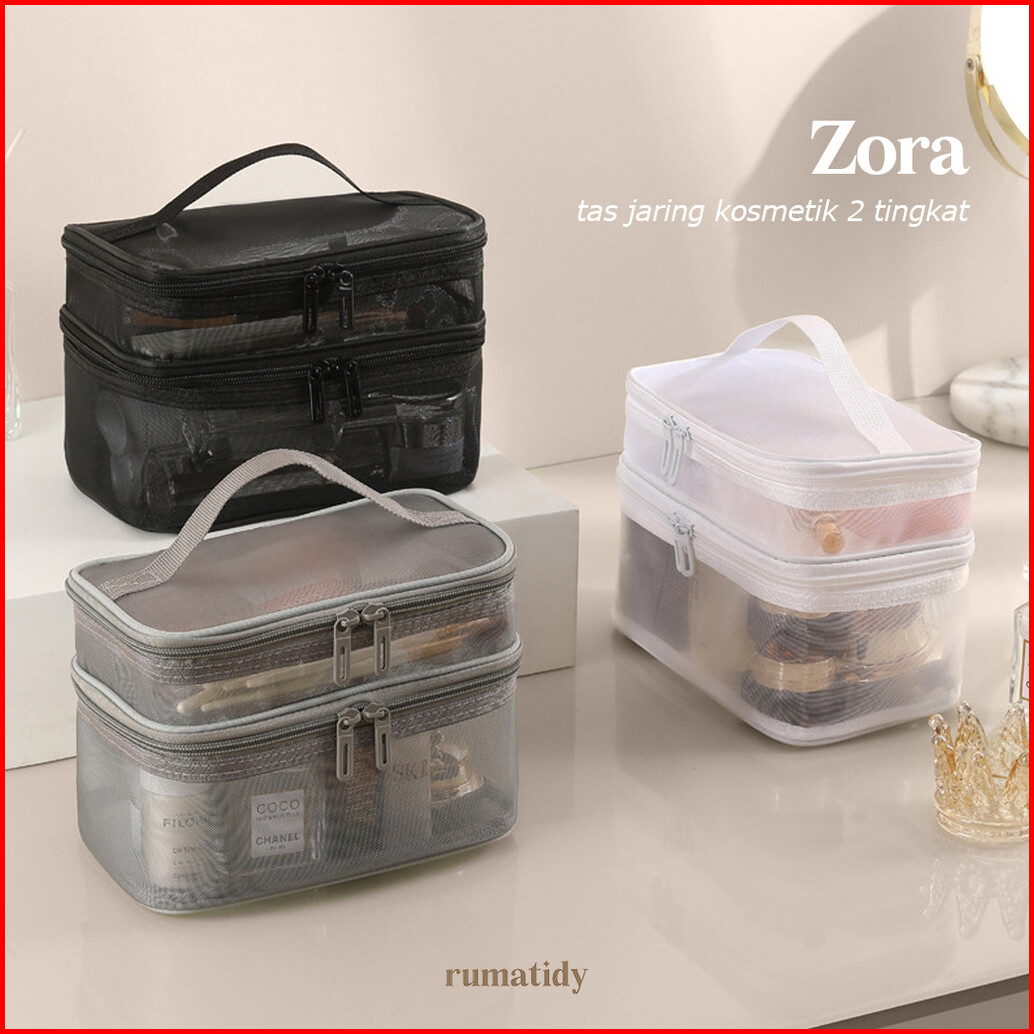 Rumatidyzora Tas Jaring 2 Tingkat Pouch Make Up Kosmetik Skincare Travel Organizer