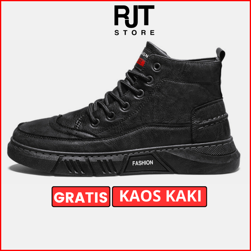Rjt Sepatu Pria Cowok Sneakers Black Jade 005 Keren Casual Sporty Terbaru Kekinian - Murah