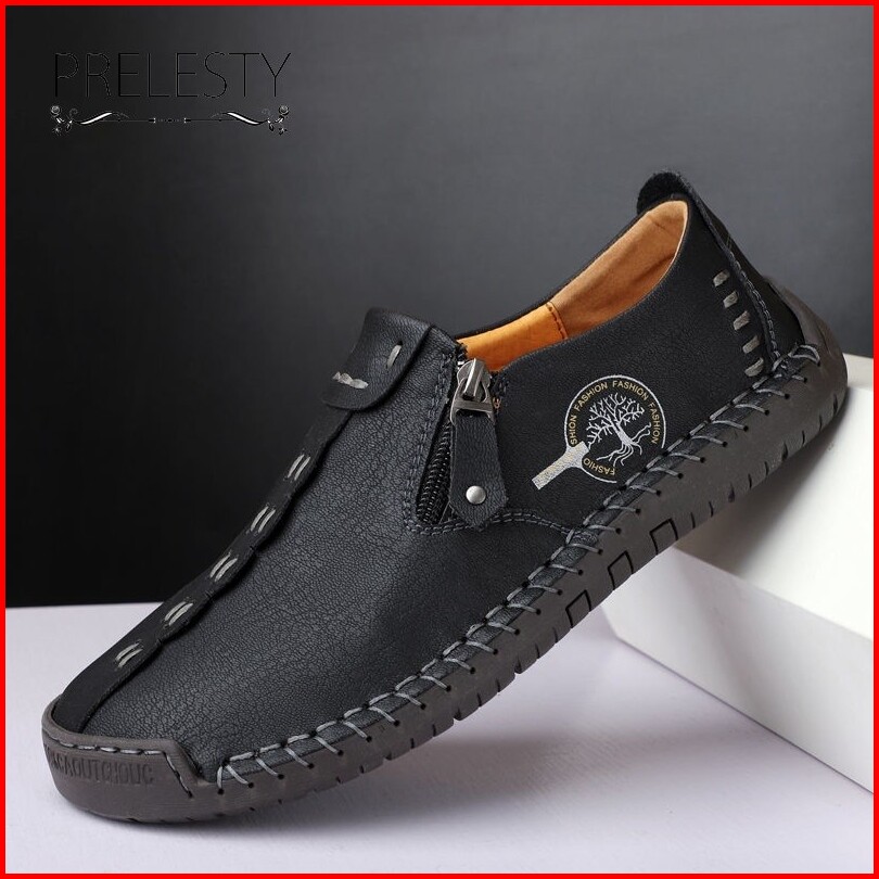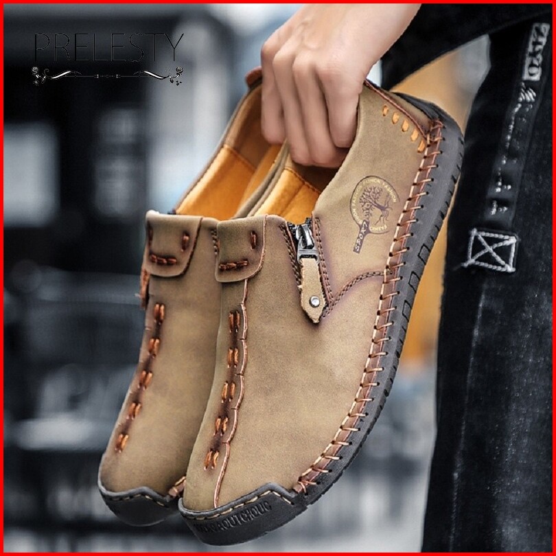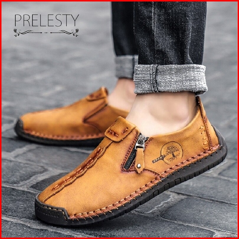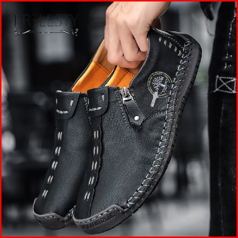 100 Kulit Asli Sepatu Pria Santai Pantofel Pria Tanpa Tali Original Kantor Casual Import Resleting Kuliah Cowok 019