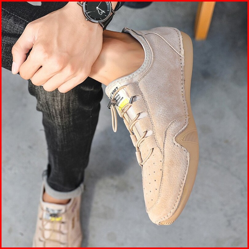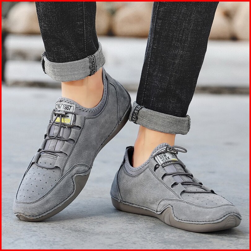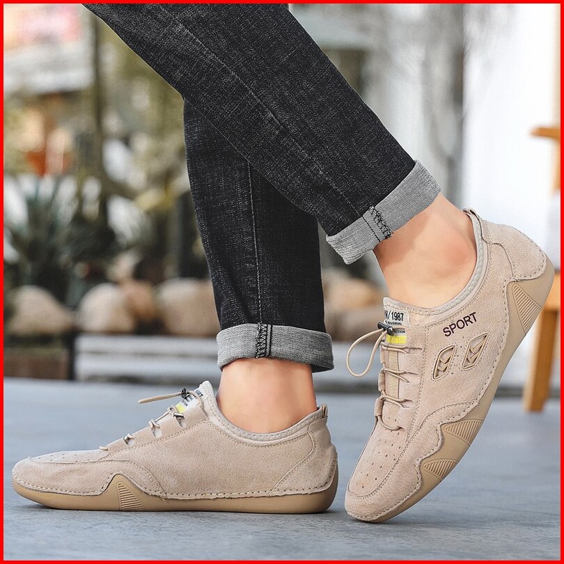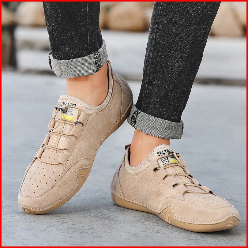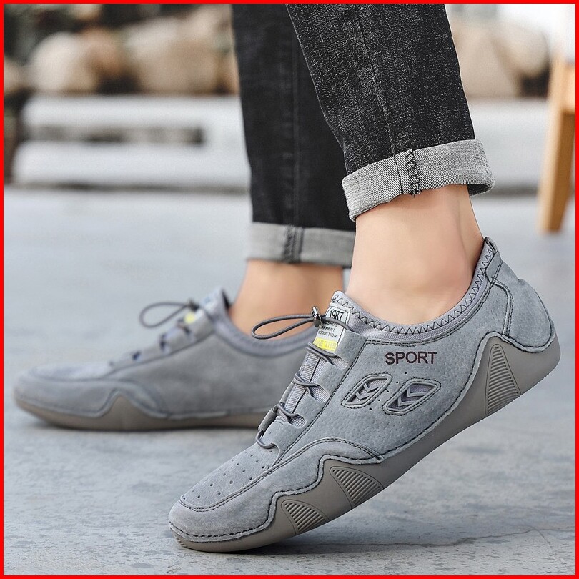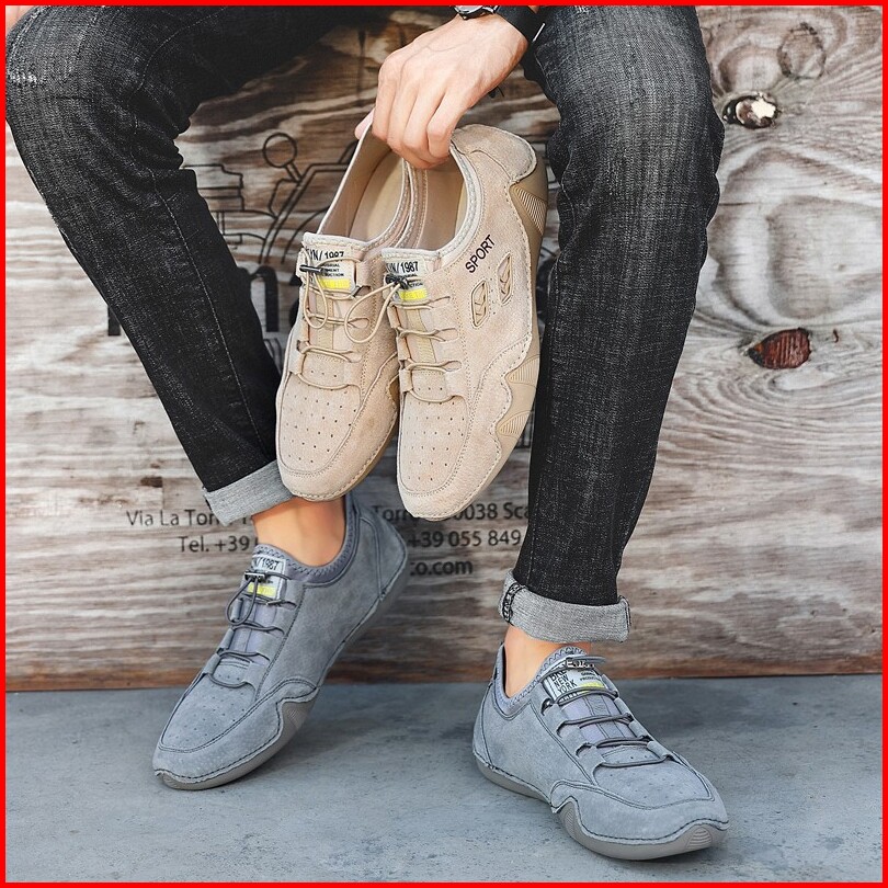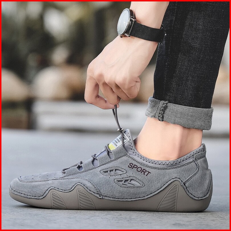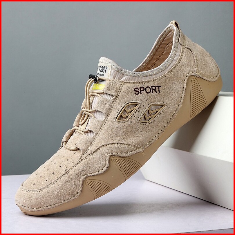 Musim Panas Fashion Kulit Asli Pria Mengemudi Sepatu Loafer Bernapas Karet Bawah Tahan