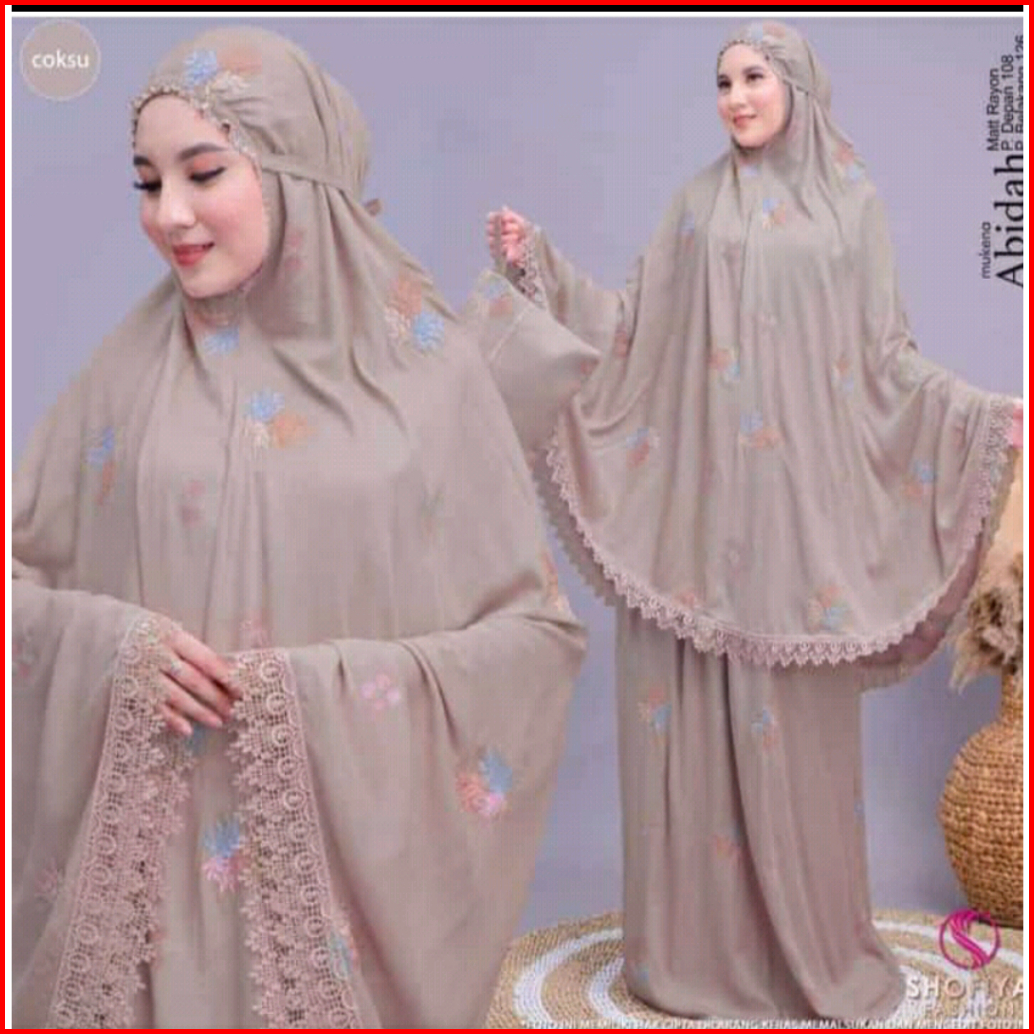 Mukena Motif Abidah Bahan Rayon Premium Bordir Full Jumbo Terbaru By Devecollection