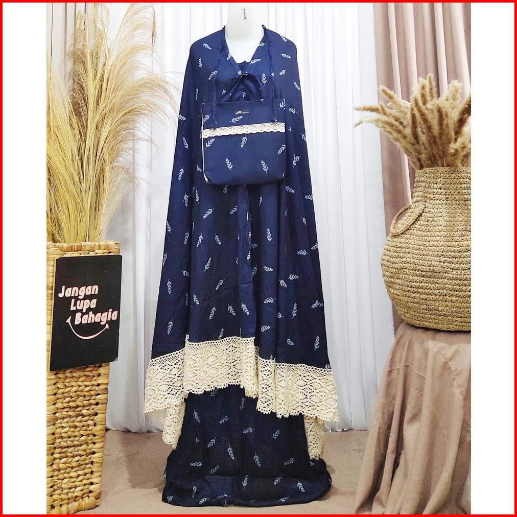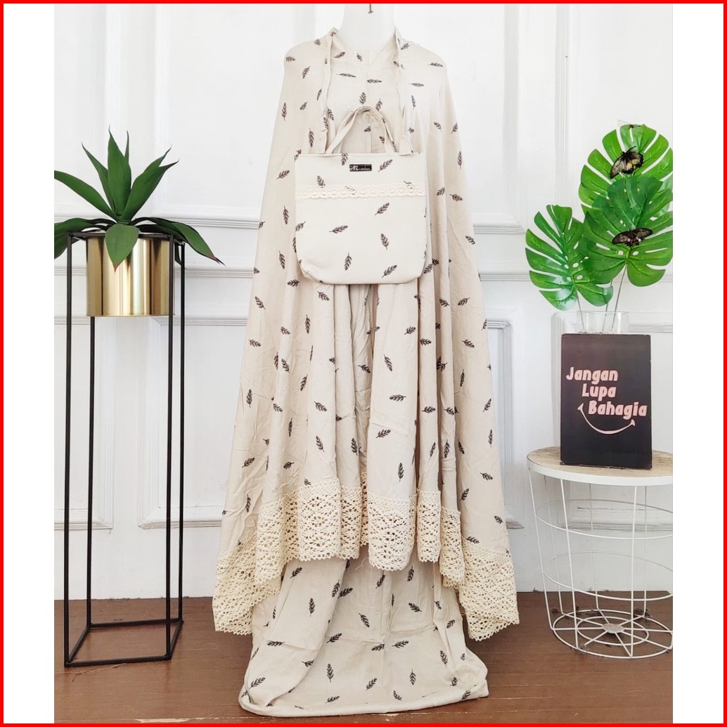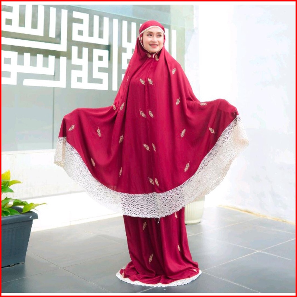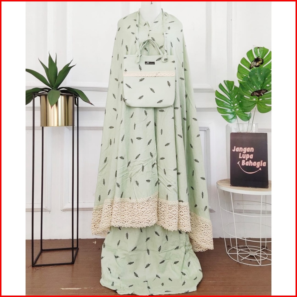 Mukena Dingin Bahan Rayon Motif Daun Cemara Jumbo Super Lembut Adem Mukena Traveling