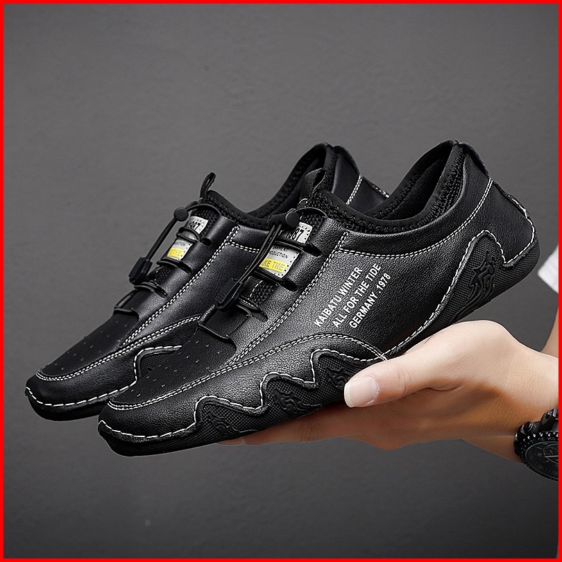 100 Kulit Asli Sepatu Pantofel Pria Slip On Formal Tali Sneaker Sepatu Loafer Olahraga Kantor Cowok 125