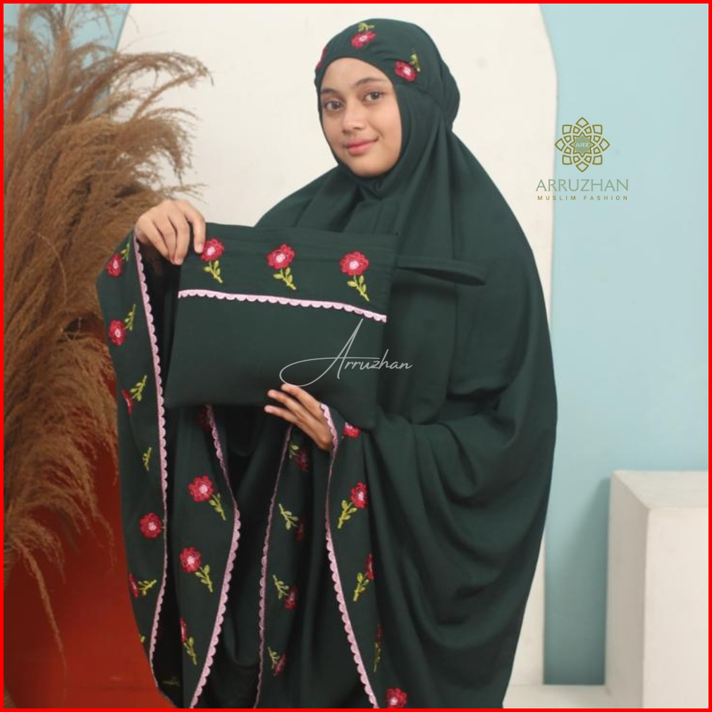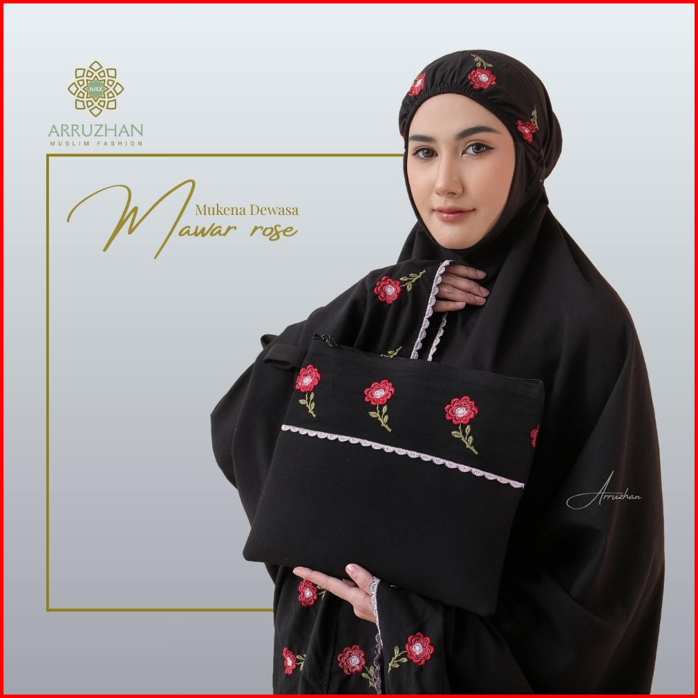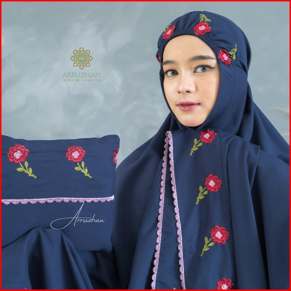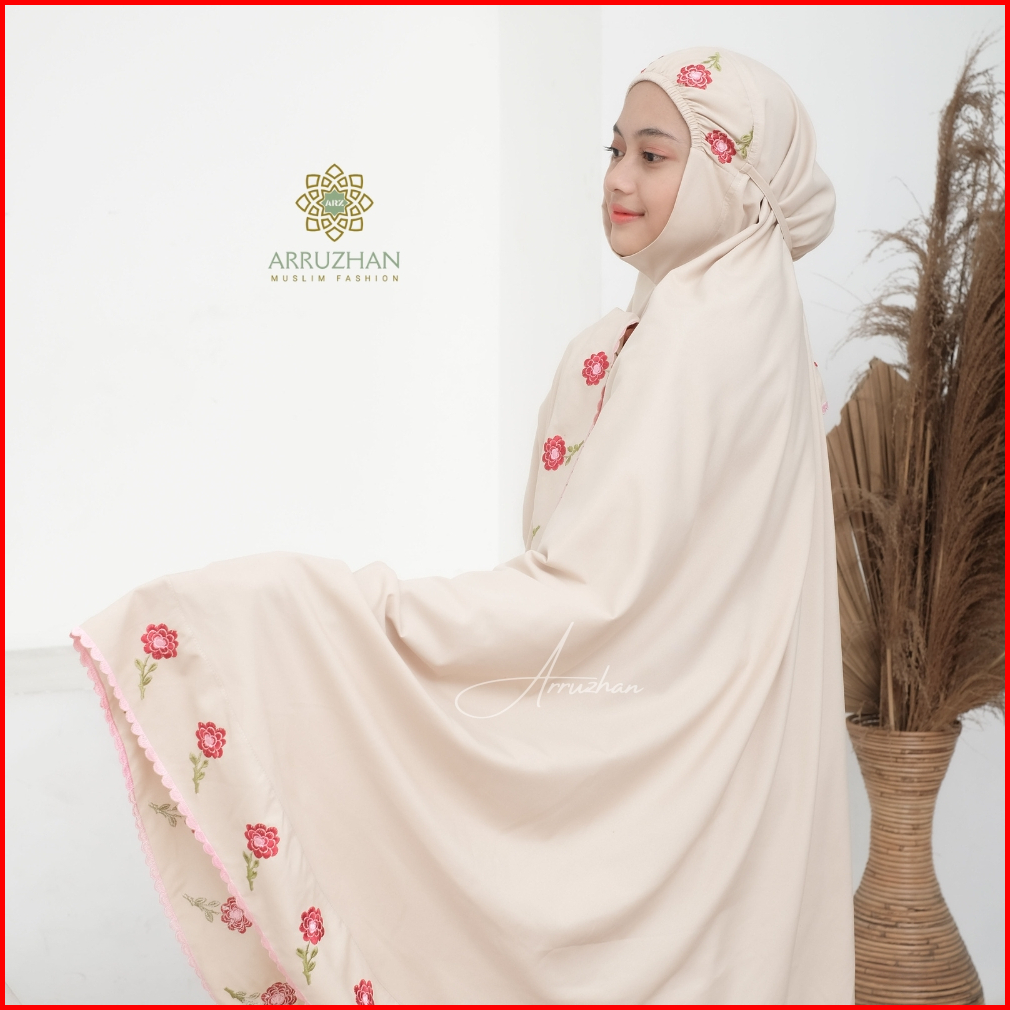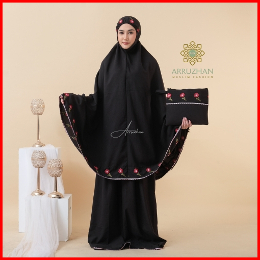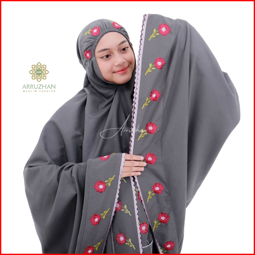 Arruzhan - Mukena Dewasa Bordir Bunga Mawar Rose Katun Premium Jumbo