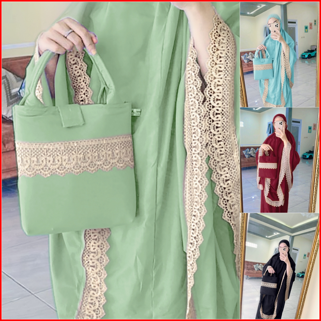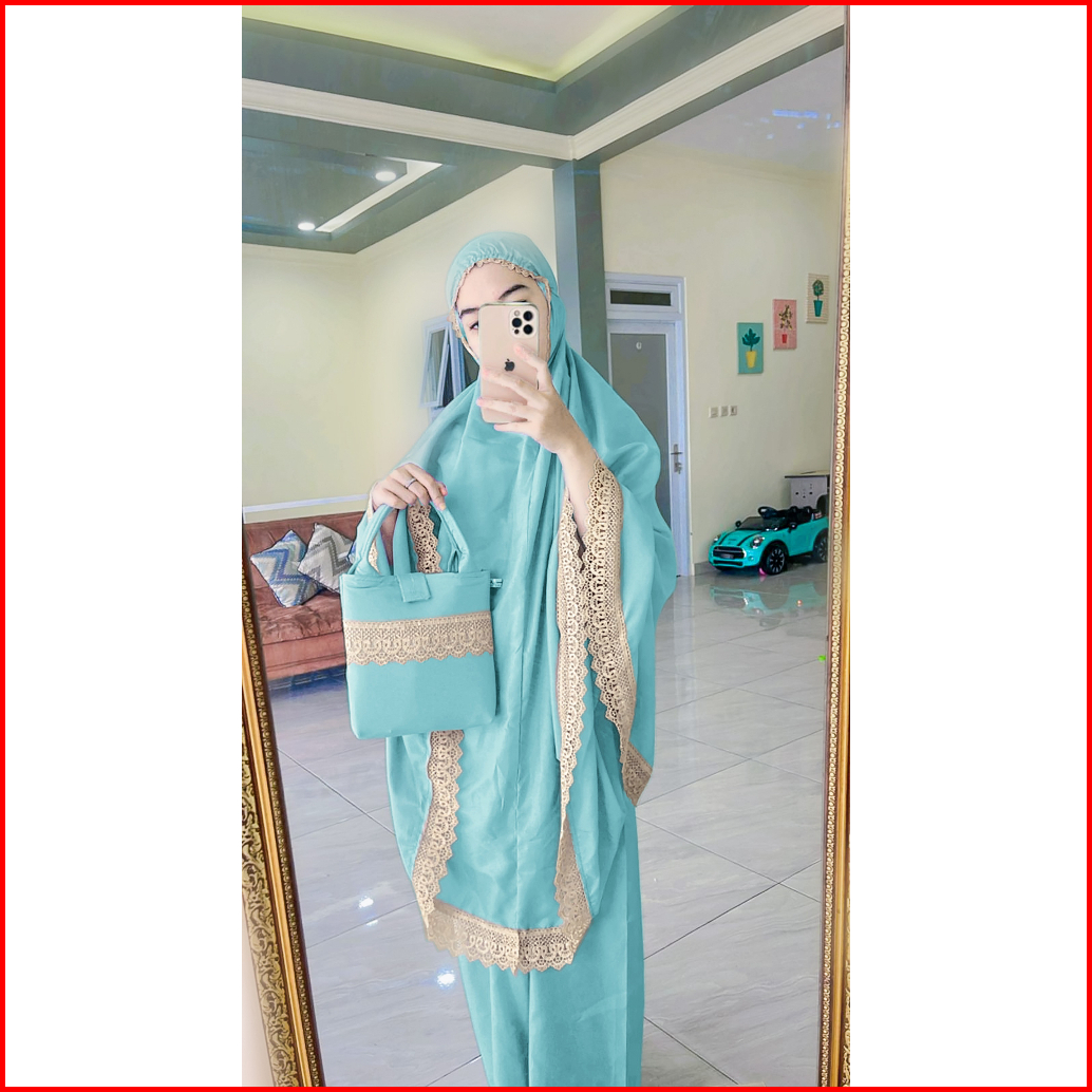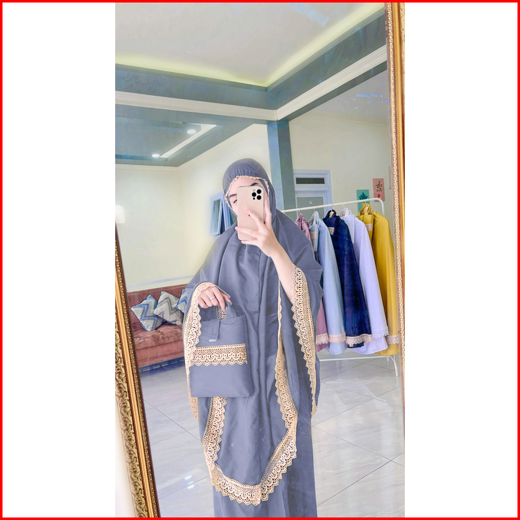 Mukena Dewasa 2in1 Aisya Retsleting Renda Cantik Lebar 7 Cm Bahan Katun Mikro Ukuran Jumbo Free Tas Cantik Mukenah Grosi