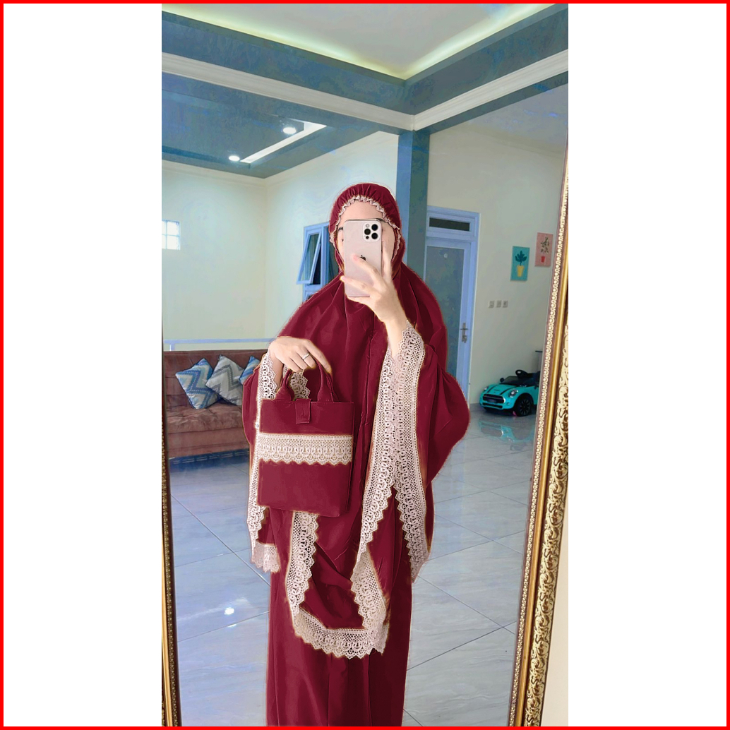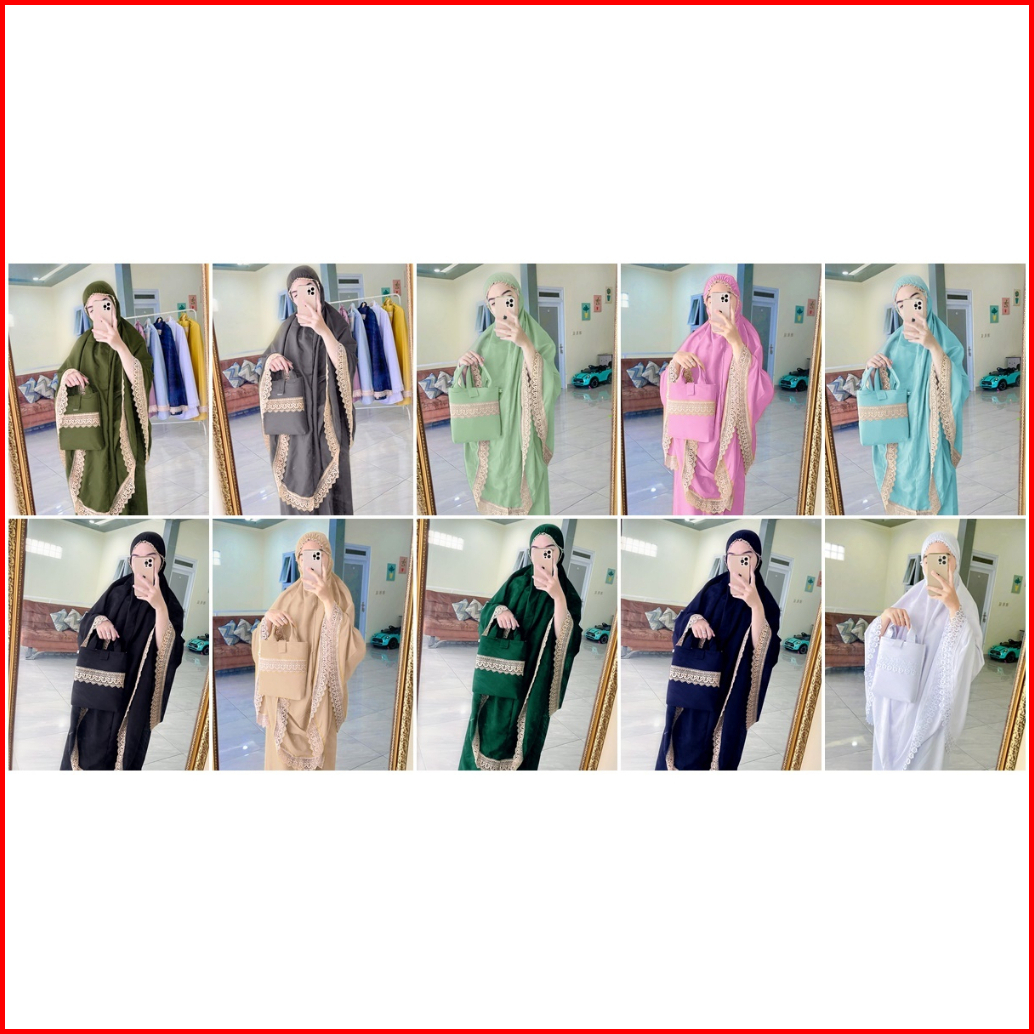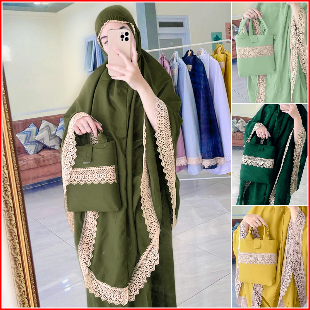 Mukena Dewasa 2in1 Aisya Retsleting Renda Cantik Lebar 7 Cm Bahan Katun Mikro Ukuran Jumbo Free Tas Cantik Mukenah Grosi