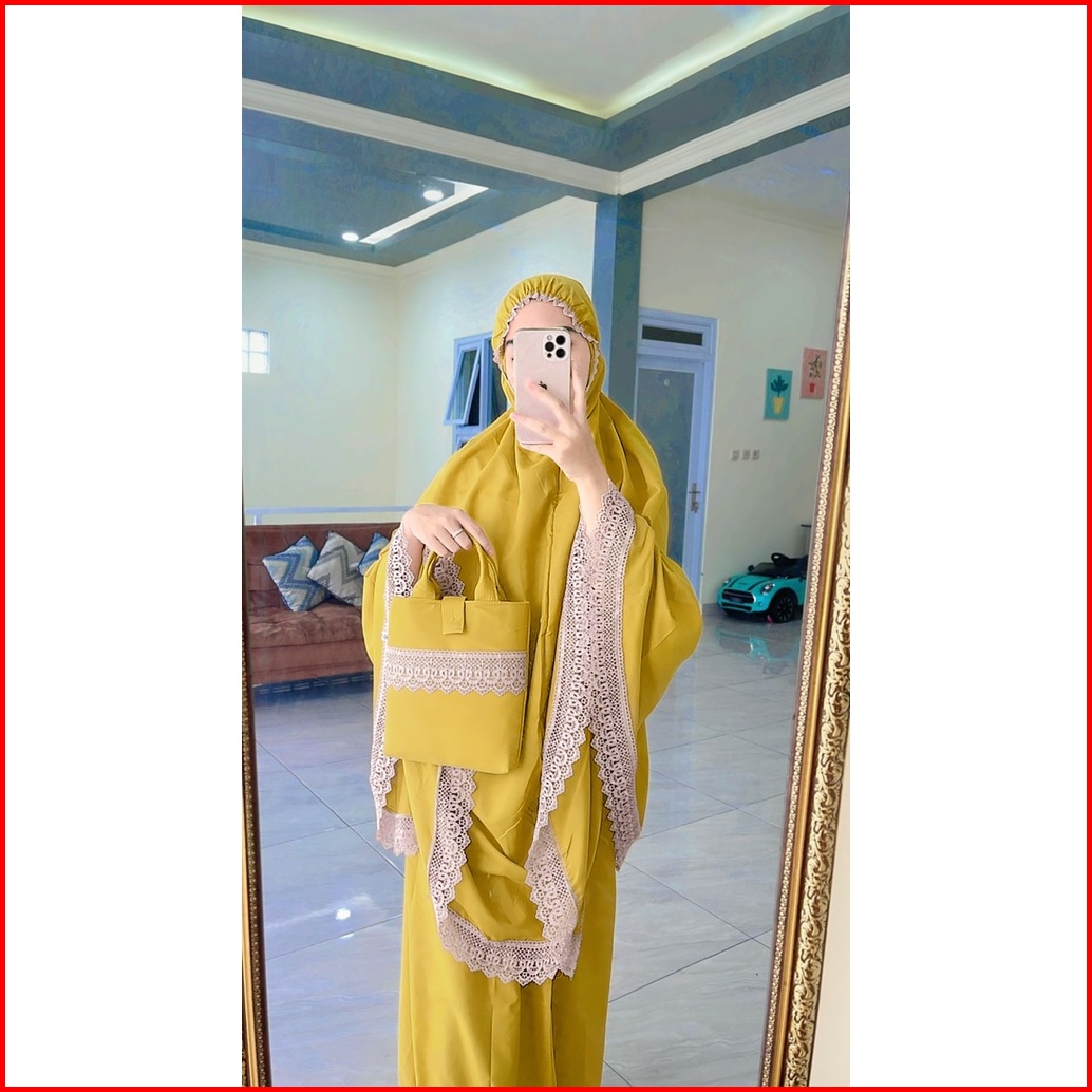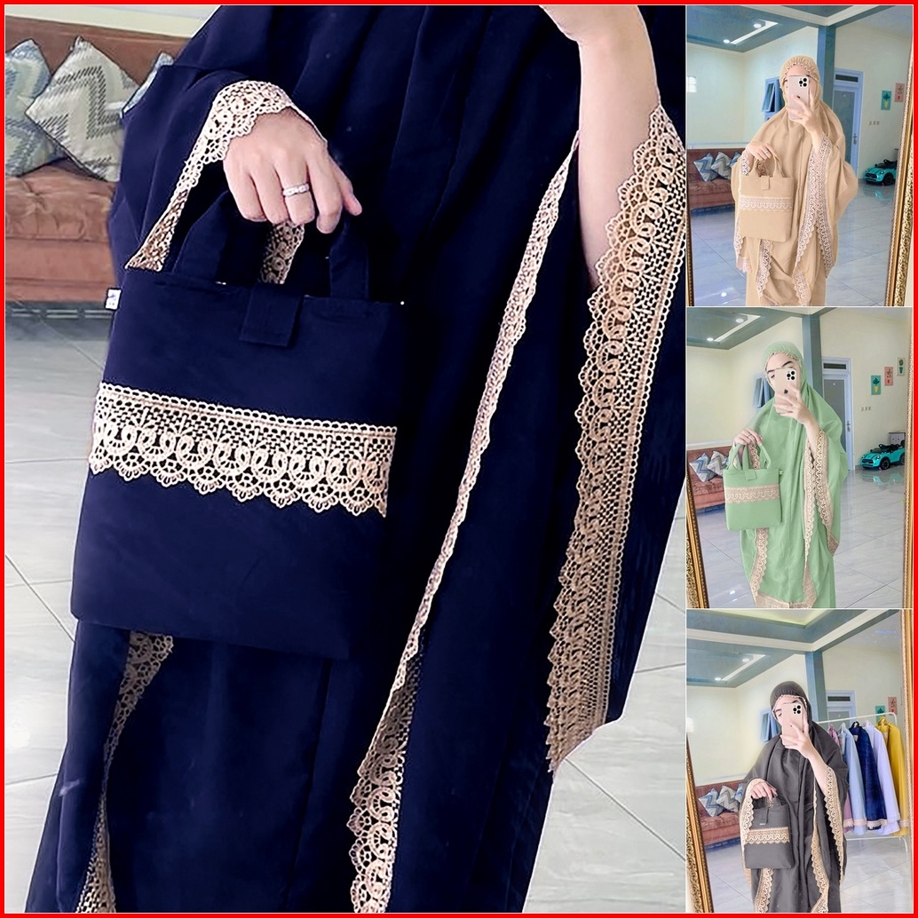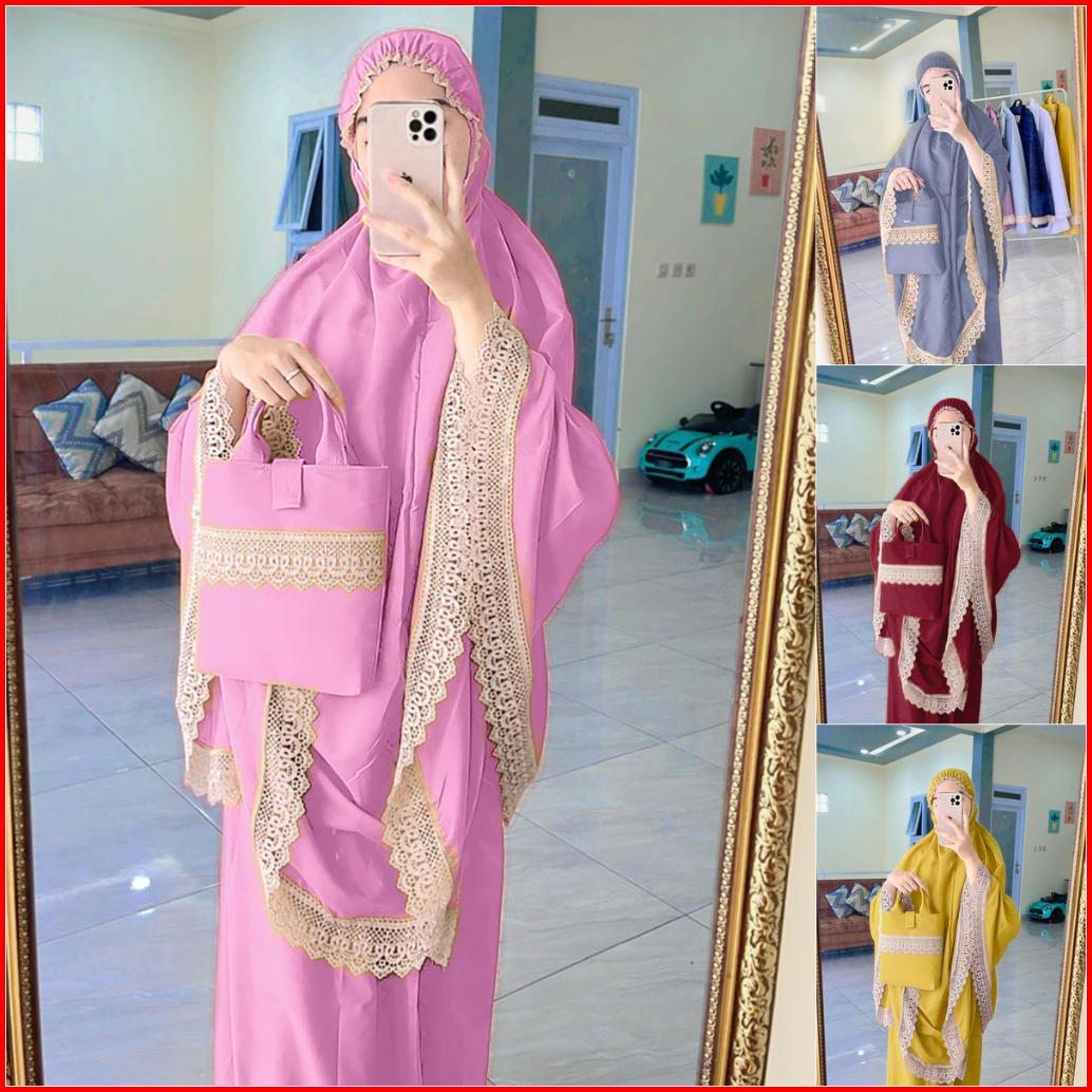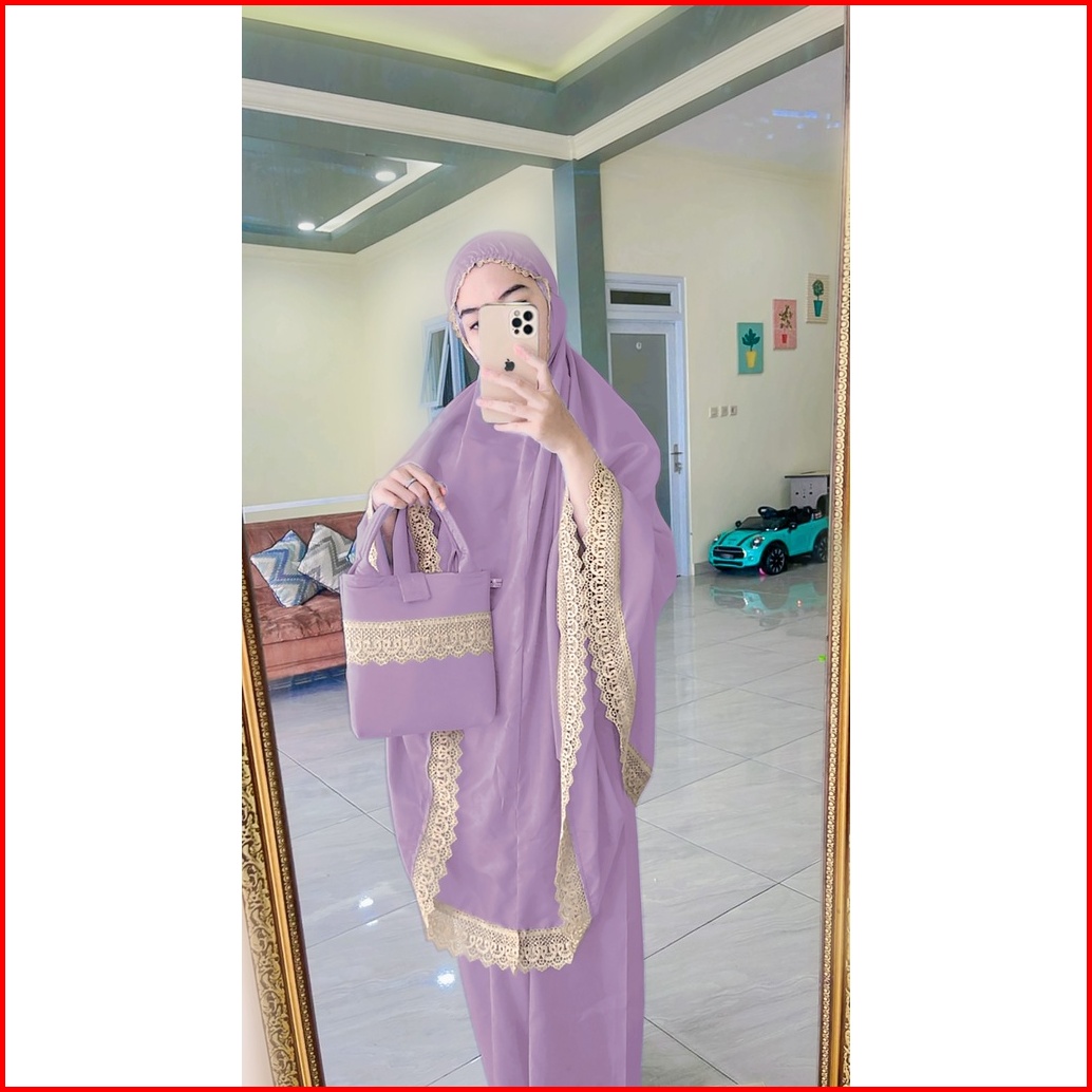 Mukena Dewasa 2in1 Aisya Retsleting Renda Cantik Lebar 7 Cm Bahan Katun Mikro Ukuran Jumbo Free Tas Cantik Mukenah Grosi