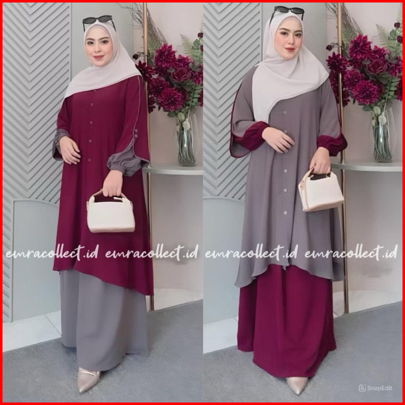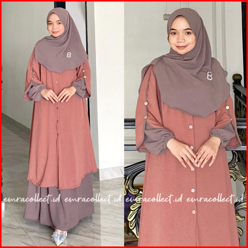 Samira Dress Set Rok Tunik Syari Setelan Rok Muslim Syari Tunik Melayu Jumbo Crinkle Airflow - Emracollect.id