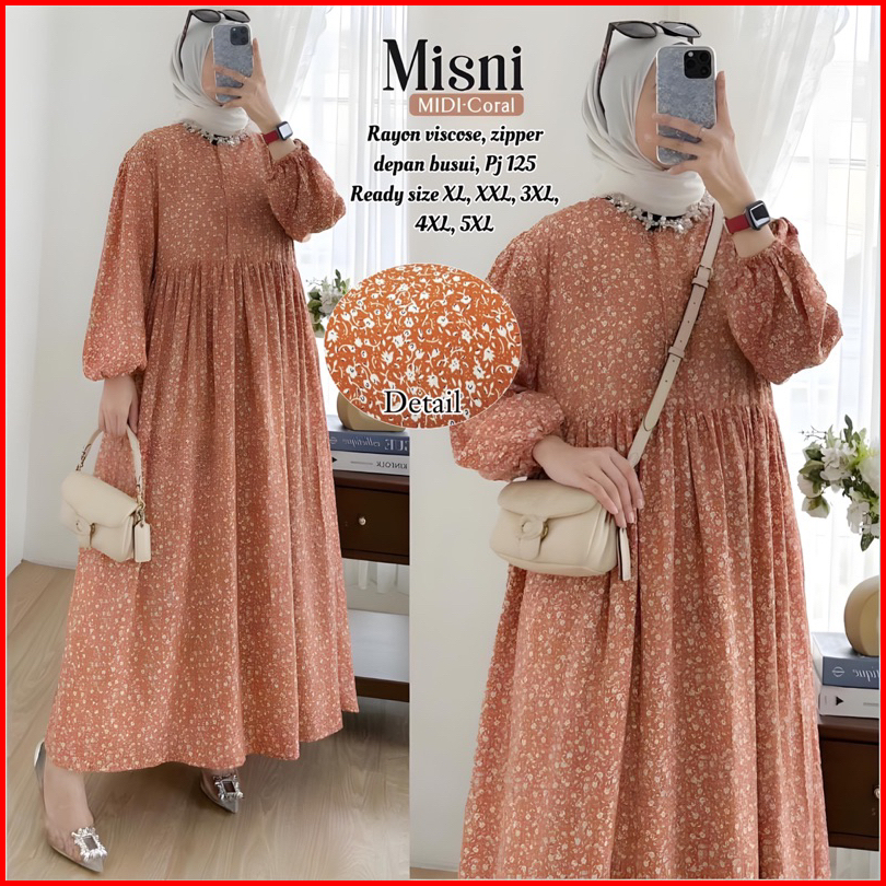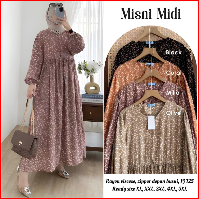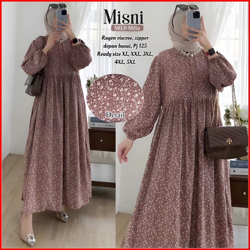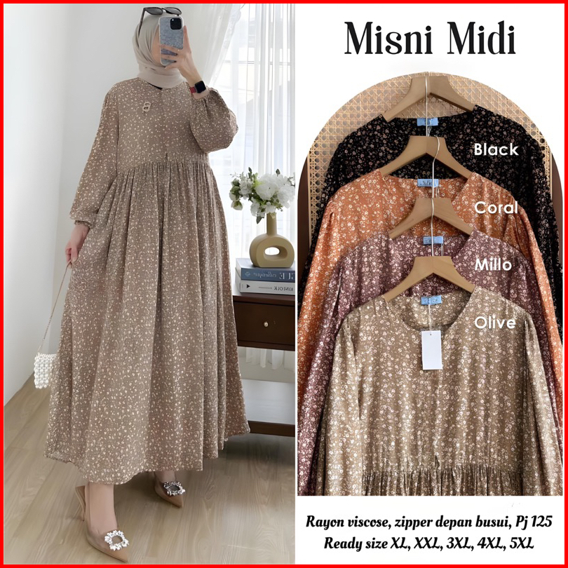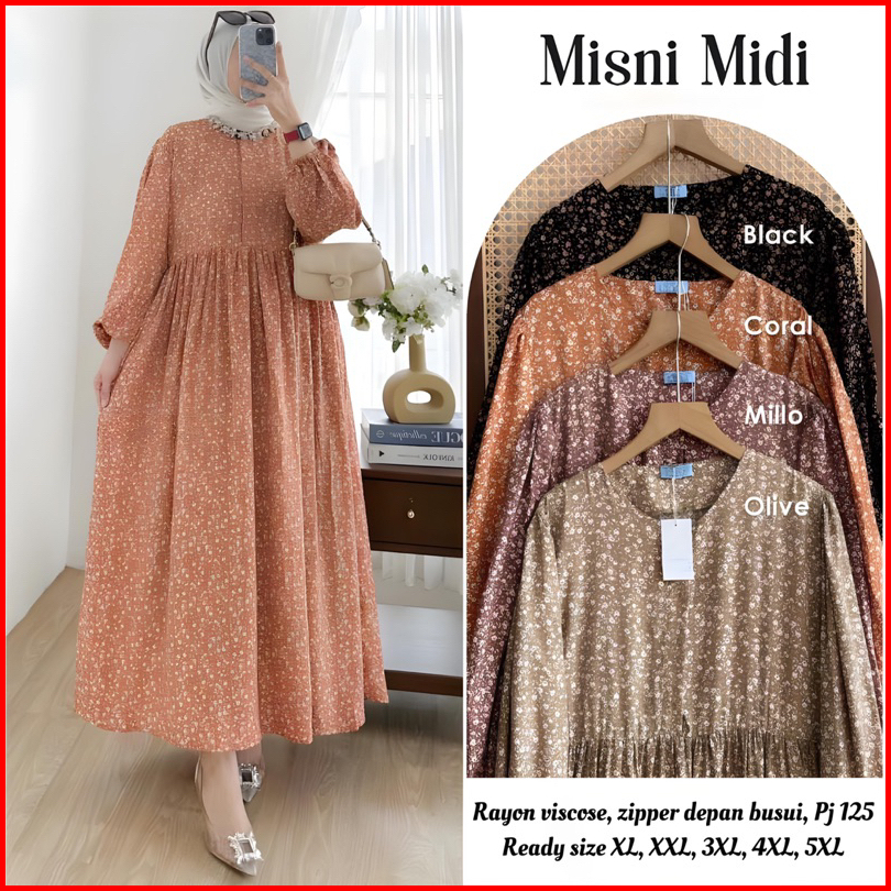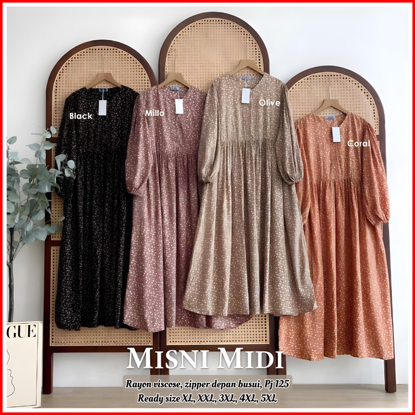 Misni Midi Dress Big Size Gamis Lebaran Ld 150 140 130 120 110 Panjang 125 Super Jumbo Xl Xxl 3xl 4xl 5xl Rayon Viscose