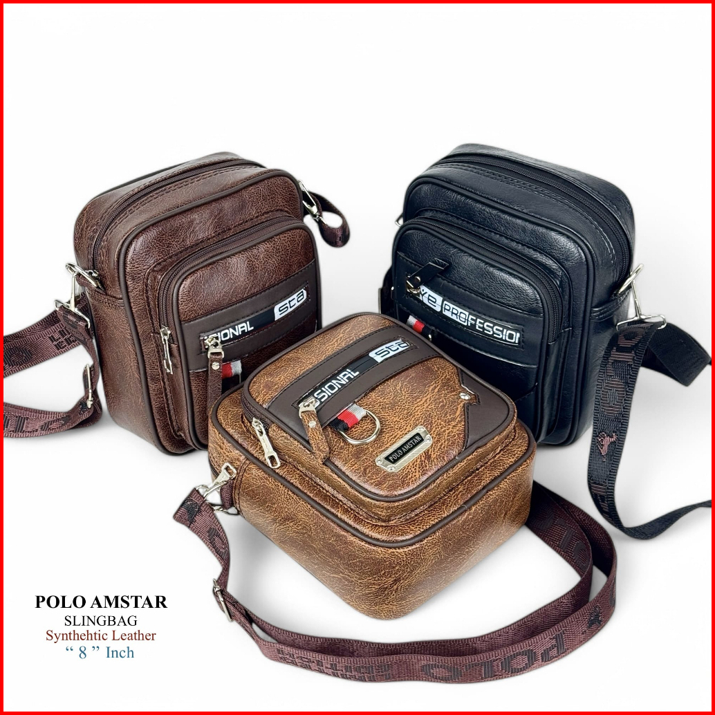 Tas Pria Tas Selempang Kulit Sintetis Pria Wanita Original Polo Amstar