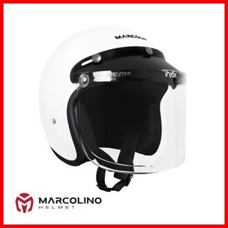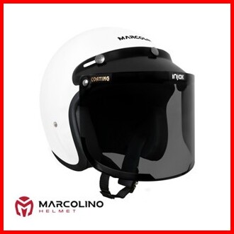 Putih Glossy With Visor Helm Bogo Retro Marcolino Glossy Doff Sni