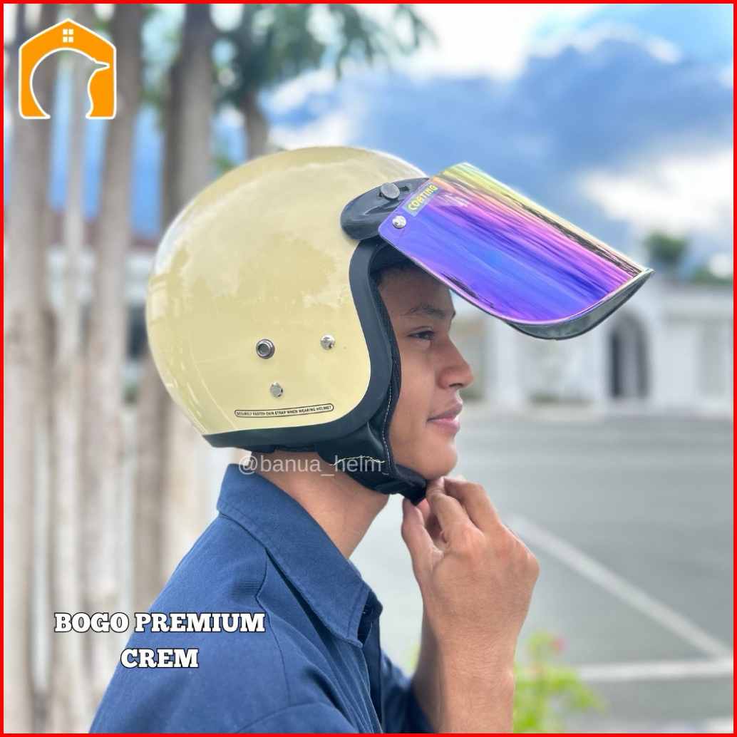 Helm Bogo Dewasa Premium Pria Wanita Sni Kaca Datar