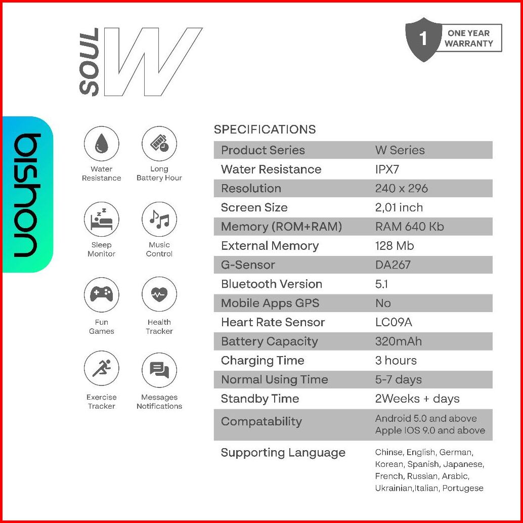 Bishon Soul W Smartwatch Water Resistance Health Tracker Jam Sport Olahraga Support Ios Android