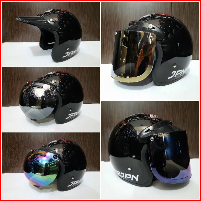 Helm Bogo Retro Hitam Metalic Abs Sni Nyaman