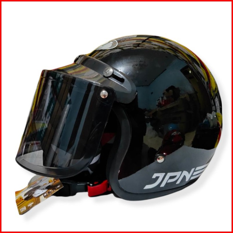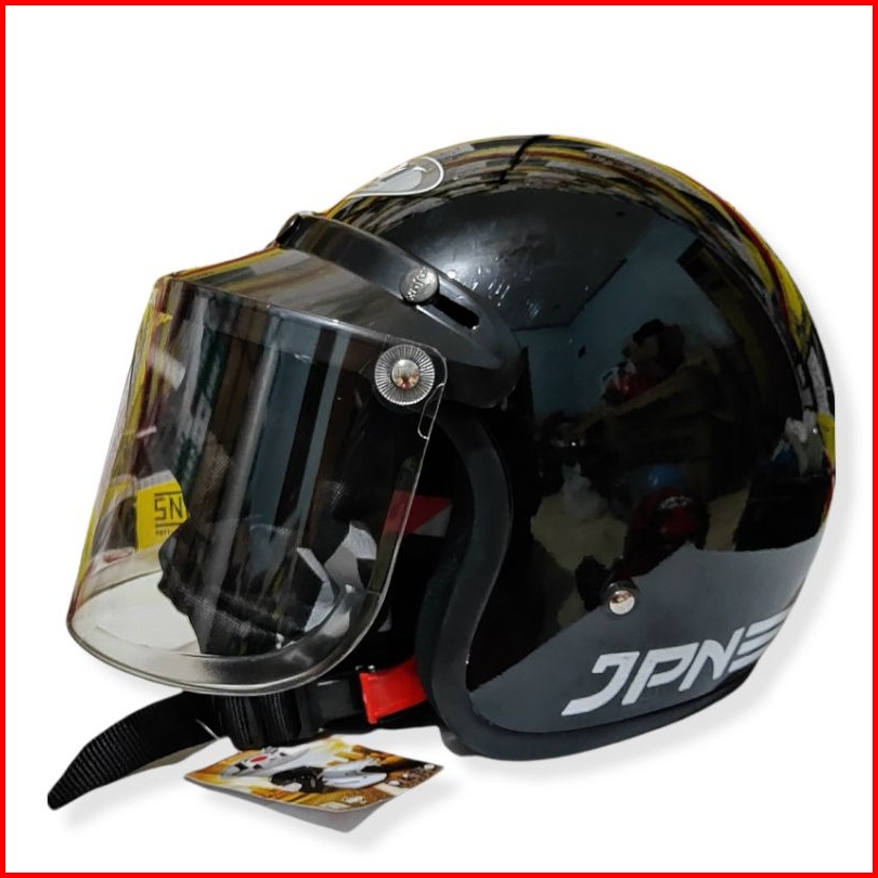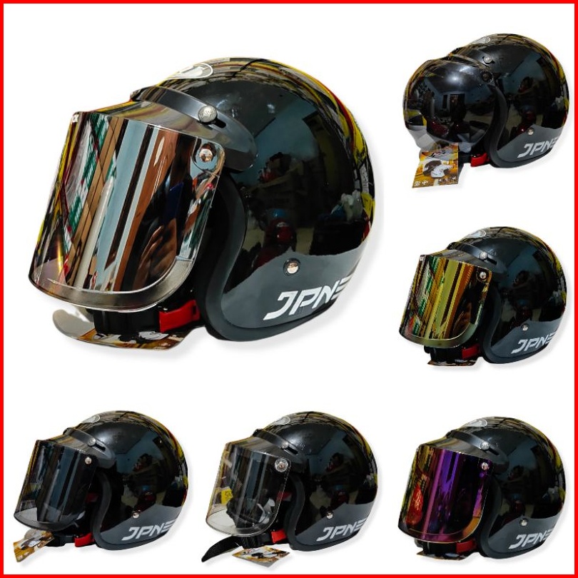 Helm Bogo Jpn Retro Hitam Glossy Kaca Datar Cembung