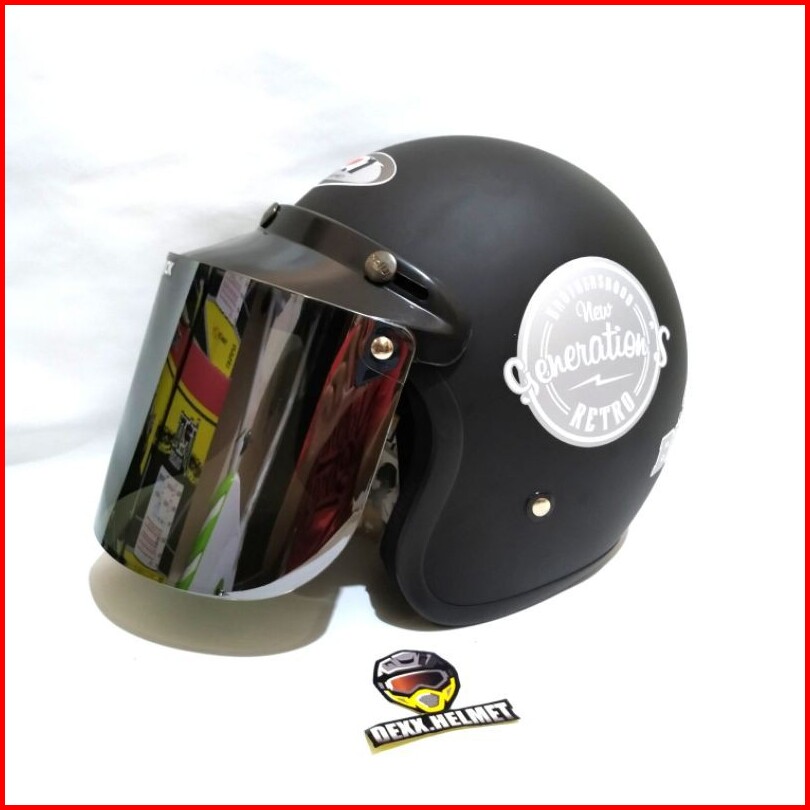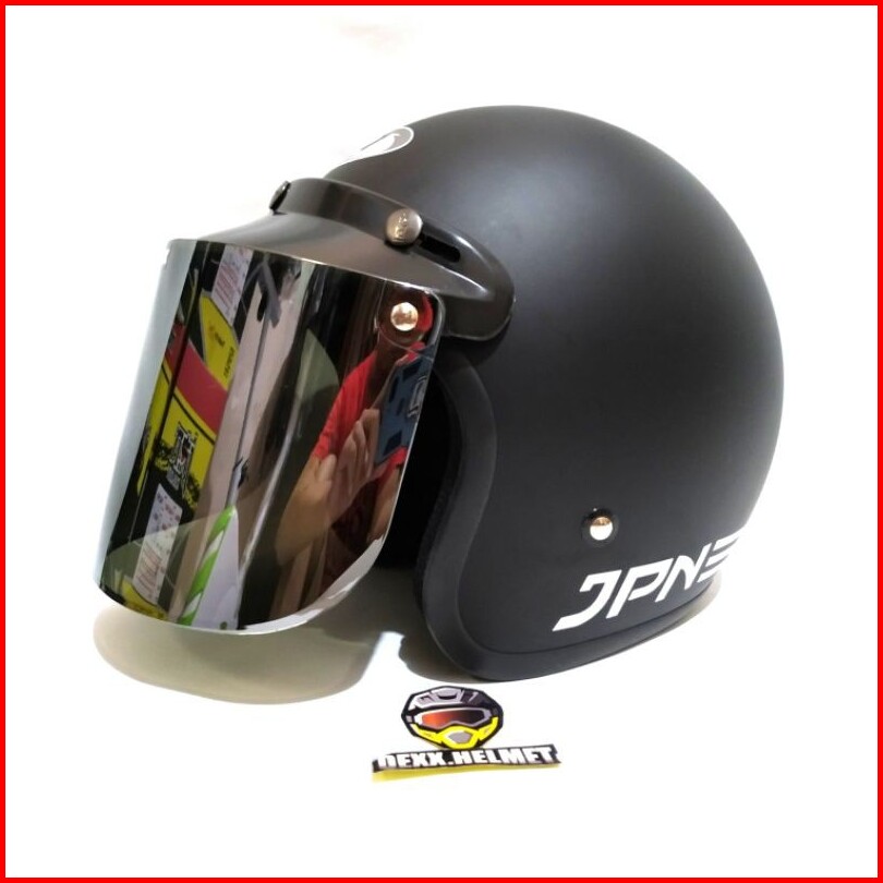 Paket Helm Bogo Jpn Original Kaca Datar Injak Hitam Silver Pelangi Bening