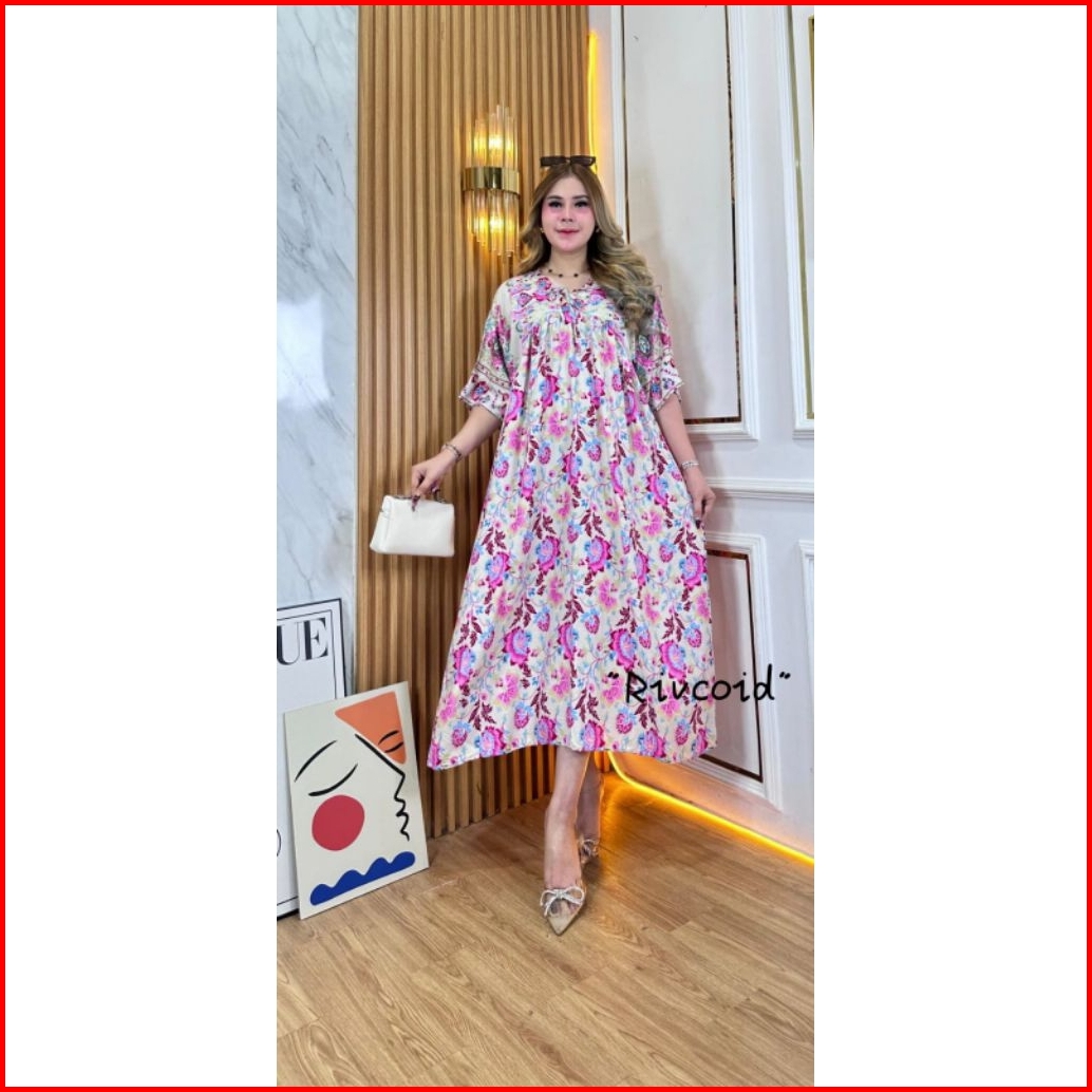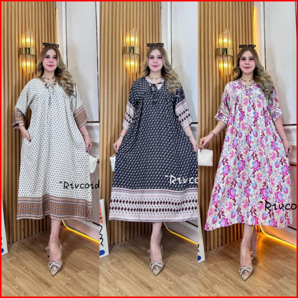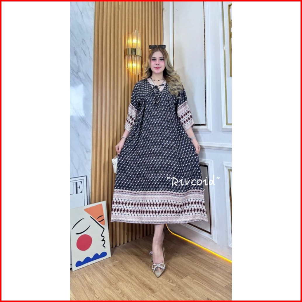 Mididress Rivco Medina Dress Dress Rayon Premium Longdress Rayon Bunga Homedress Daster Midi Rayon