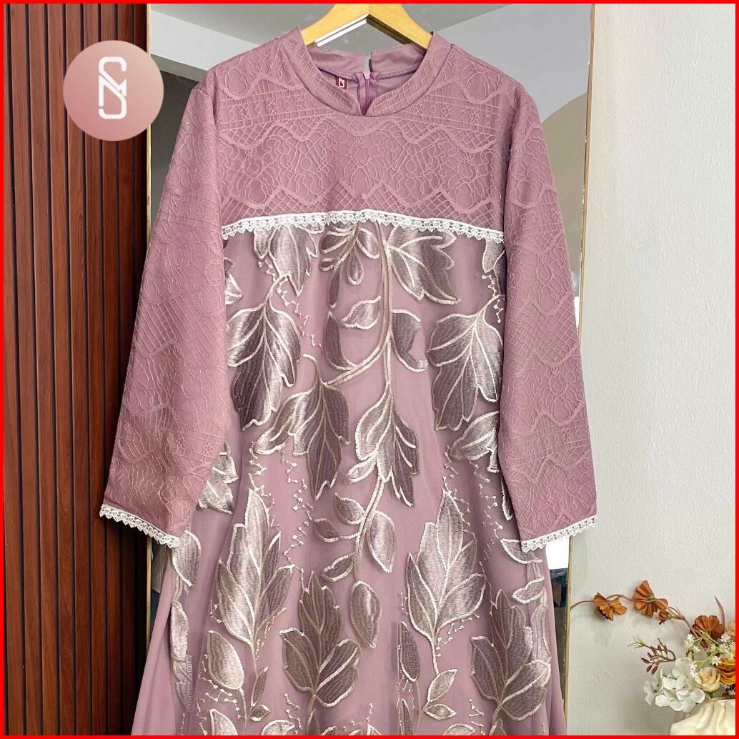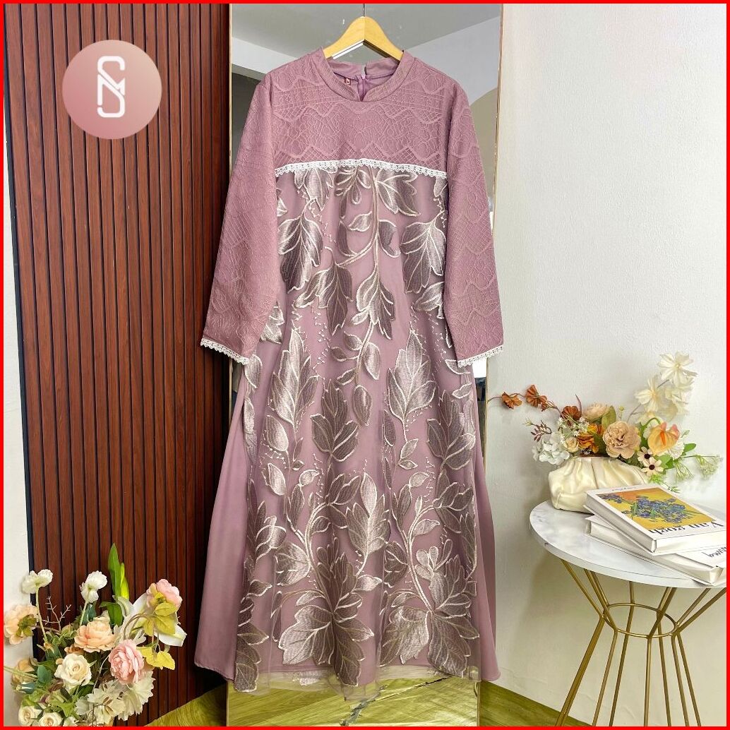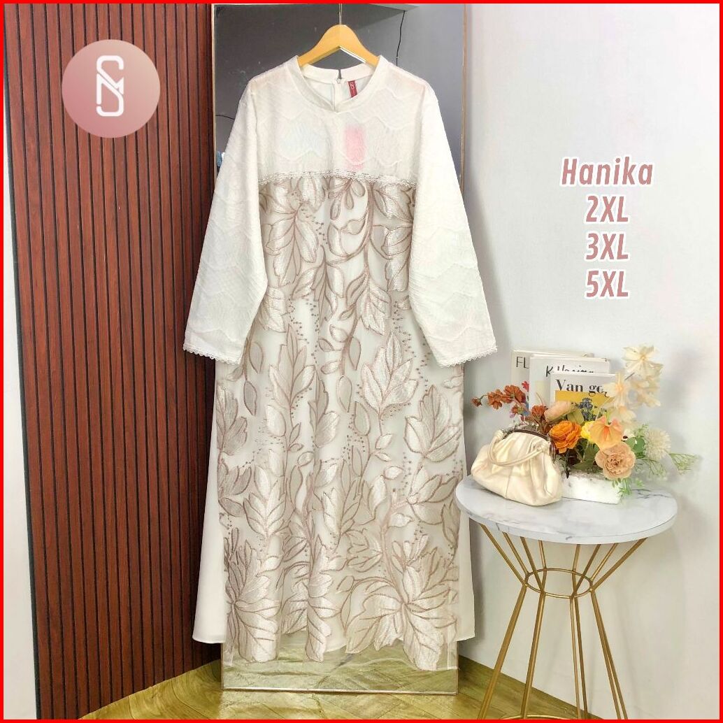 Myshawl Hanika Gamis Jumbo Tille Motif Kasual Kondangan Wisuda Kekinian Big Size Brukat Bunga Jumbo Najma