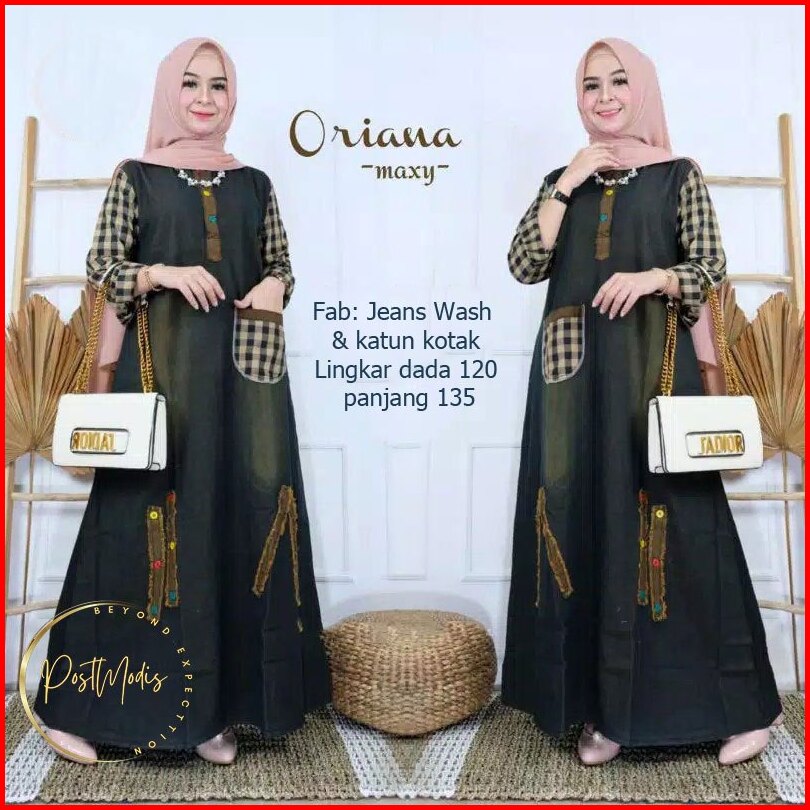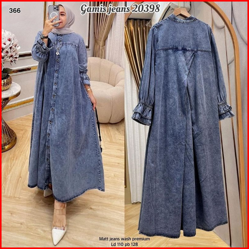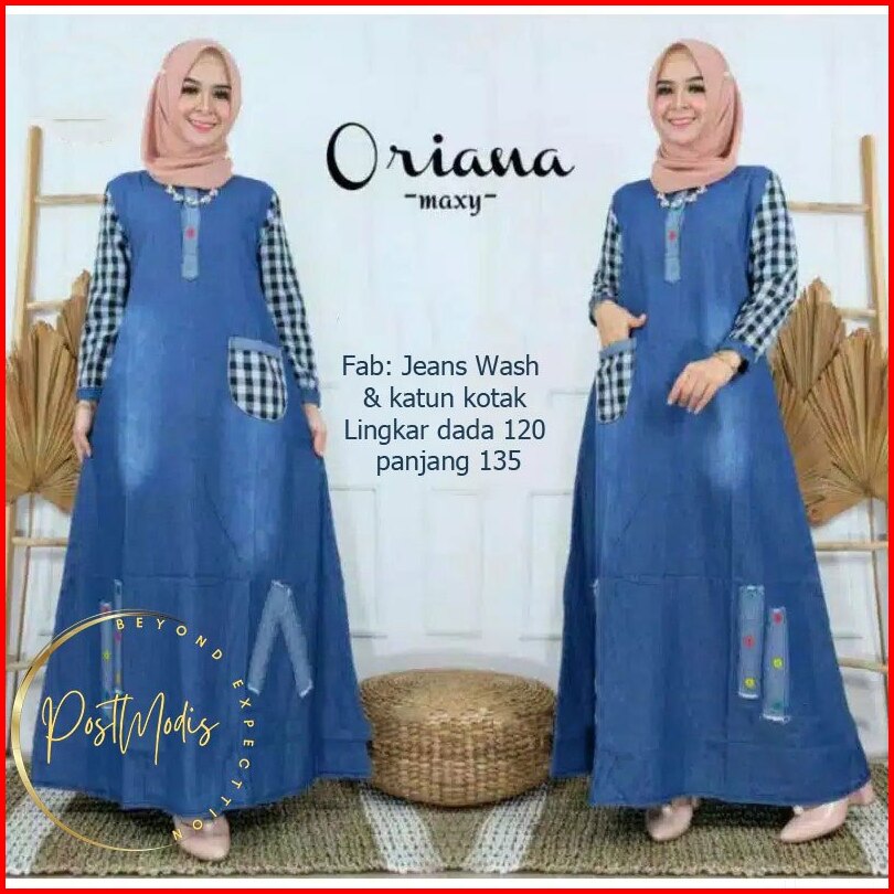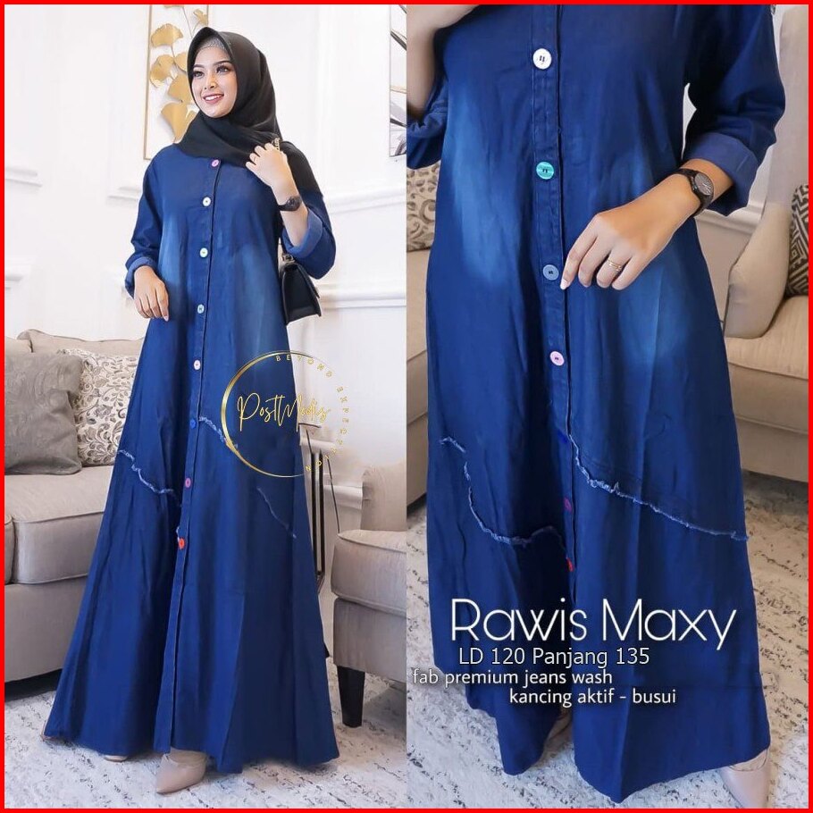 Baju Gamis Wanita Elegan Maxi Dress Jeans Gamis Lebaran Kekinian Terbaru Ld 110 Dan 120