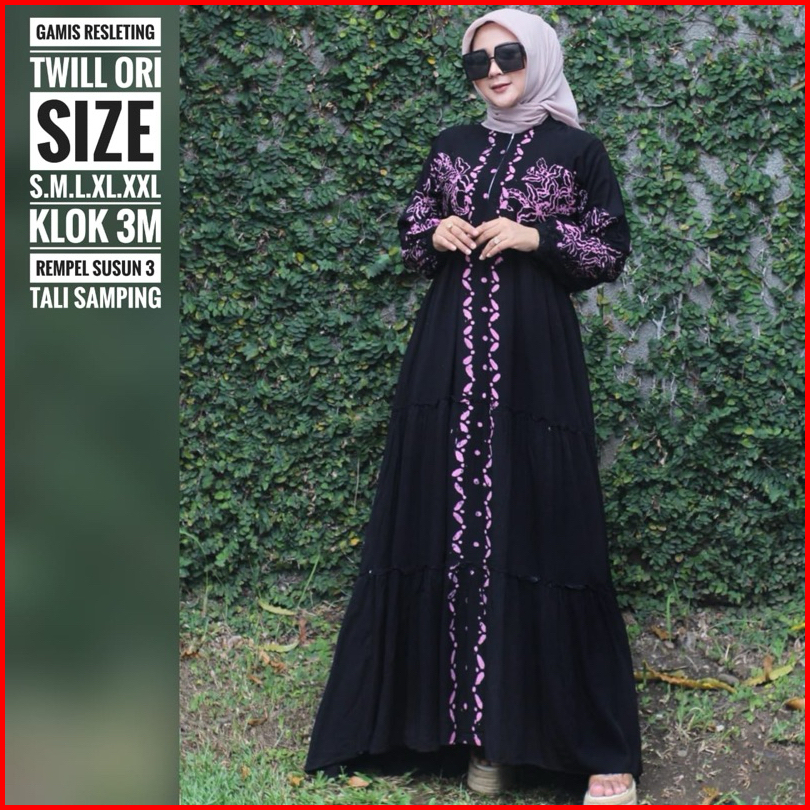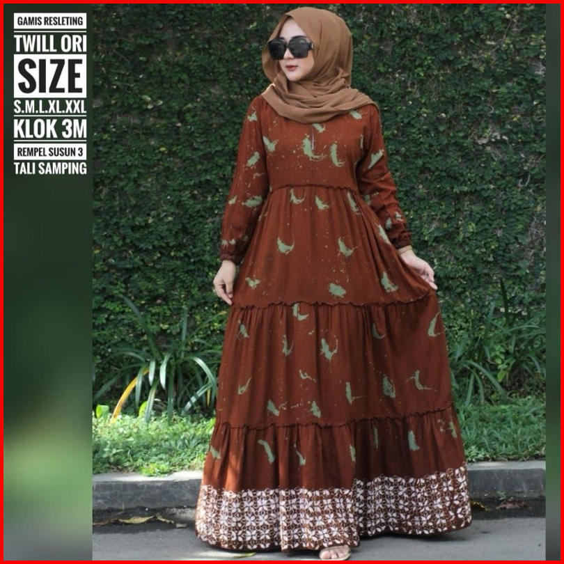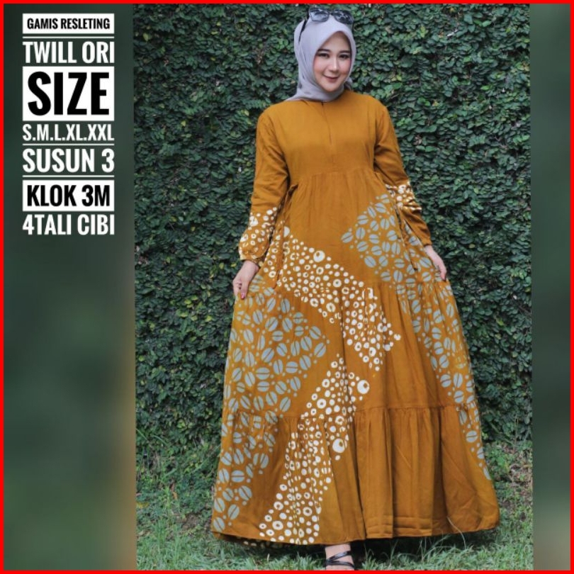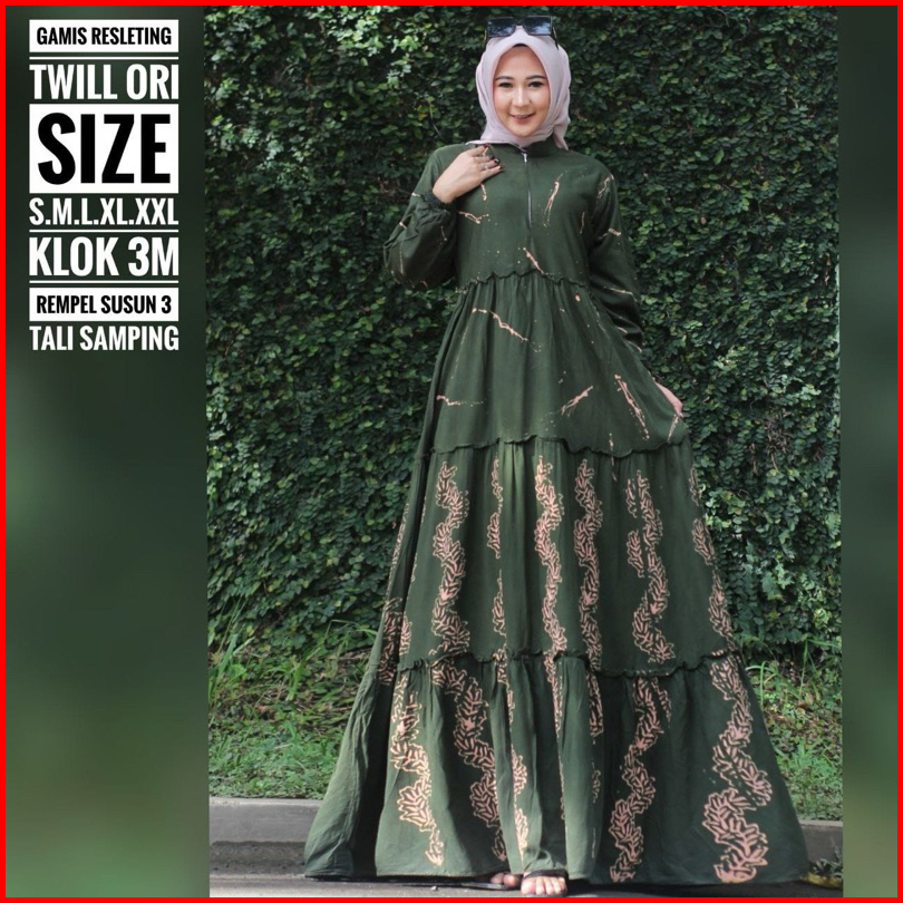 Gamis Twill Susun Resleting Depan Motif Terbaru Batik Cap Malam Gamis Twill Ory Asli Batik Pekalongan Gamis Twill Klok 3